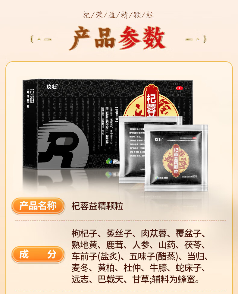 [玖壮]杞蓉益精颗粒 1.5g*8袋 3盒装 补肾助阳填精益气肾阳不足精气两虚枸杞人参鹿茸男性滋补正品中成药 填精益气
