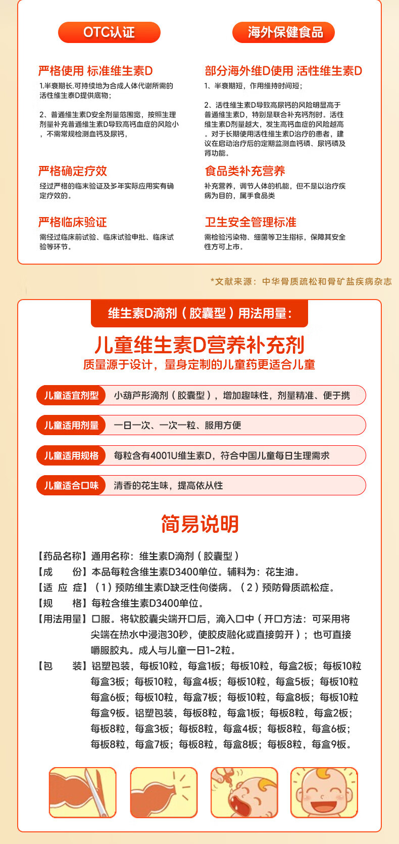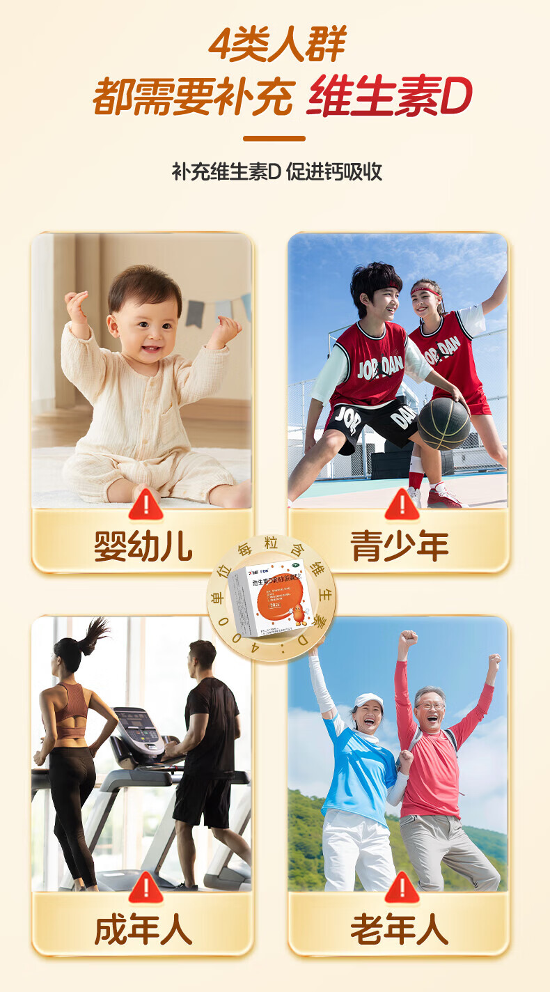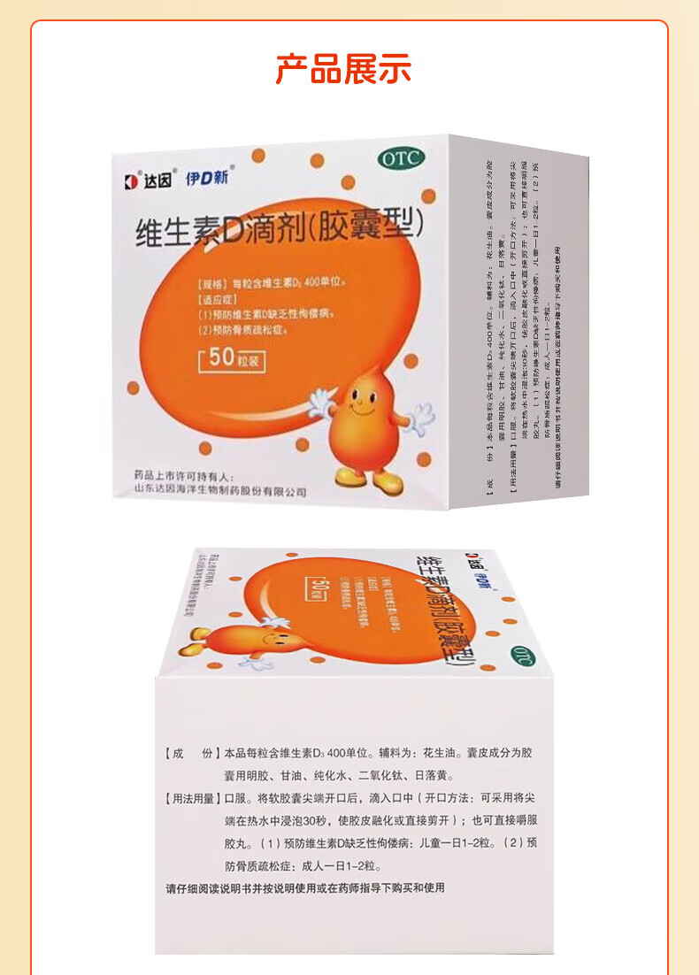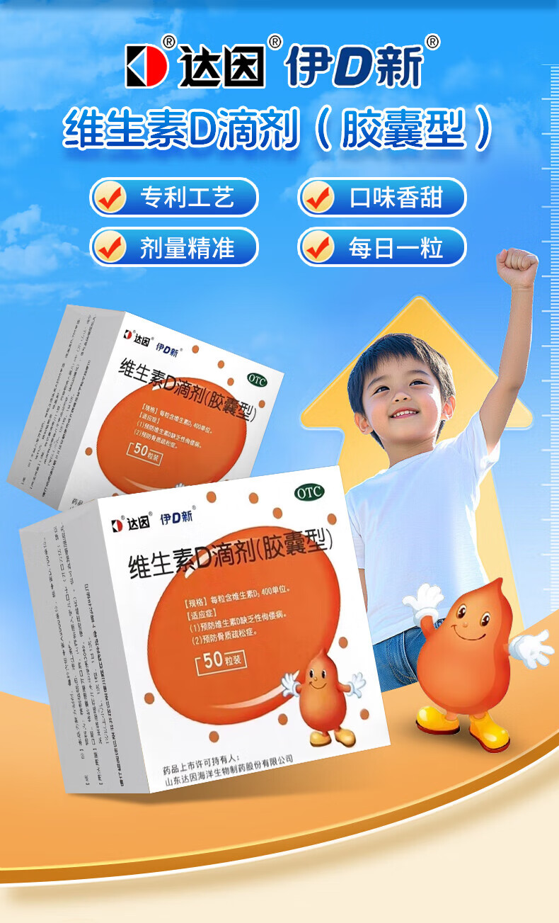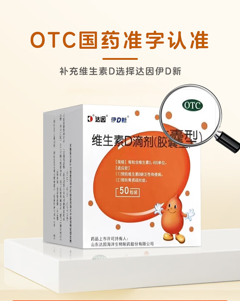 [达因]维生素D滴剂 400IU*60粒 1盒装 伊可新婴儿儿童青少年成人孕妇促钙吸收 好效期 国药准字OTC 26年11月过期