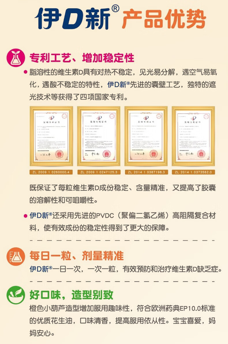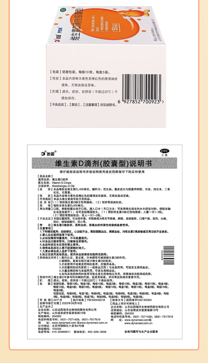 [达因]维生素D滴剂 400IU*60粒 1盒装 60粒伊可新婴儿儿童青少年成人孕妇促钙吸收 好效期 国药准字OTC 26年11月过期