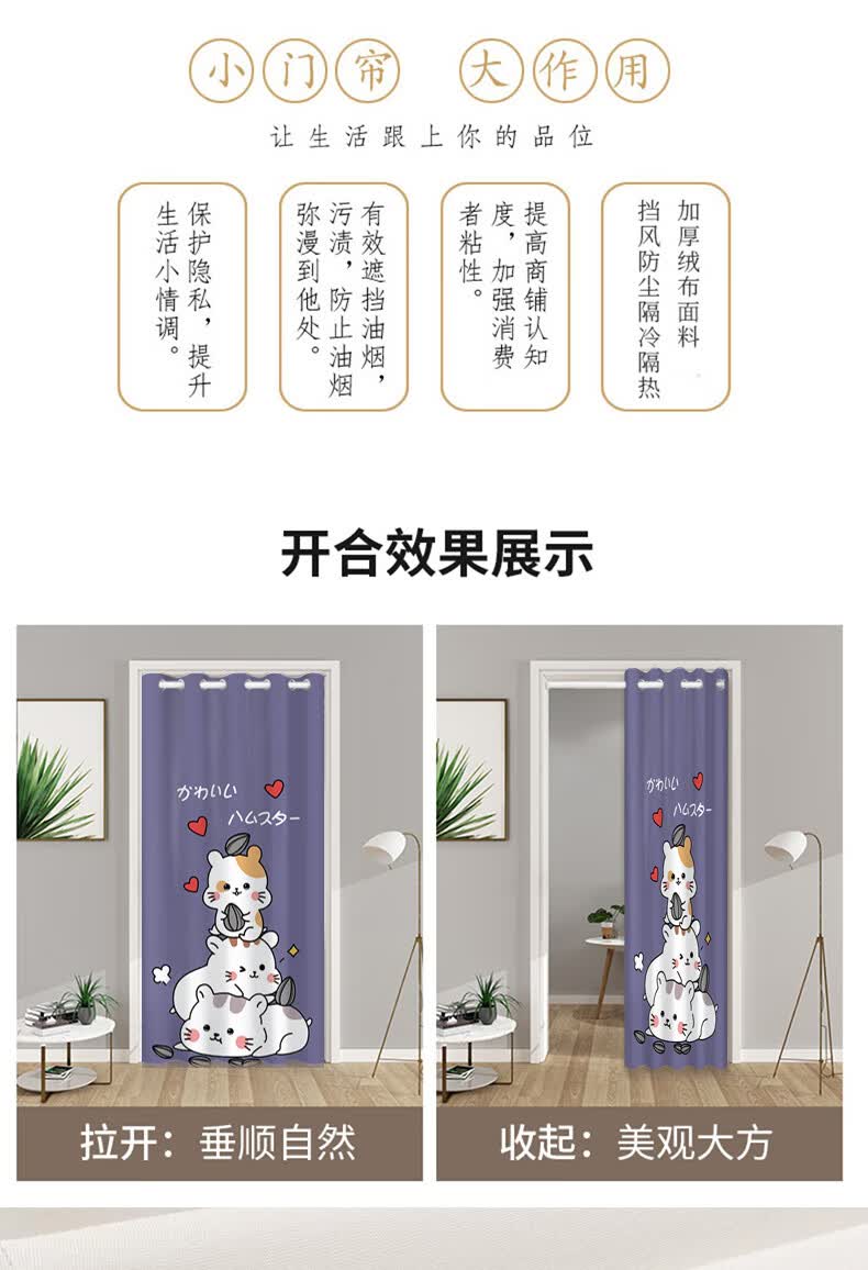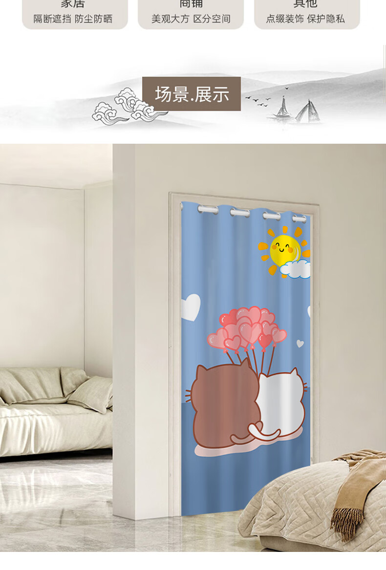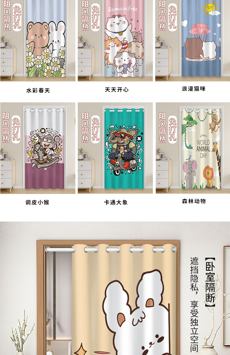 尔青岚卡通门帘免打孔 卧室客厅遮挡帘 空调暖气房隔断帘卫生间隐私挂帘 水彩春天 【适合110-150门宽】帘宽170x240