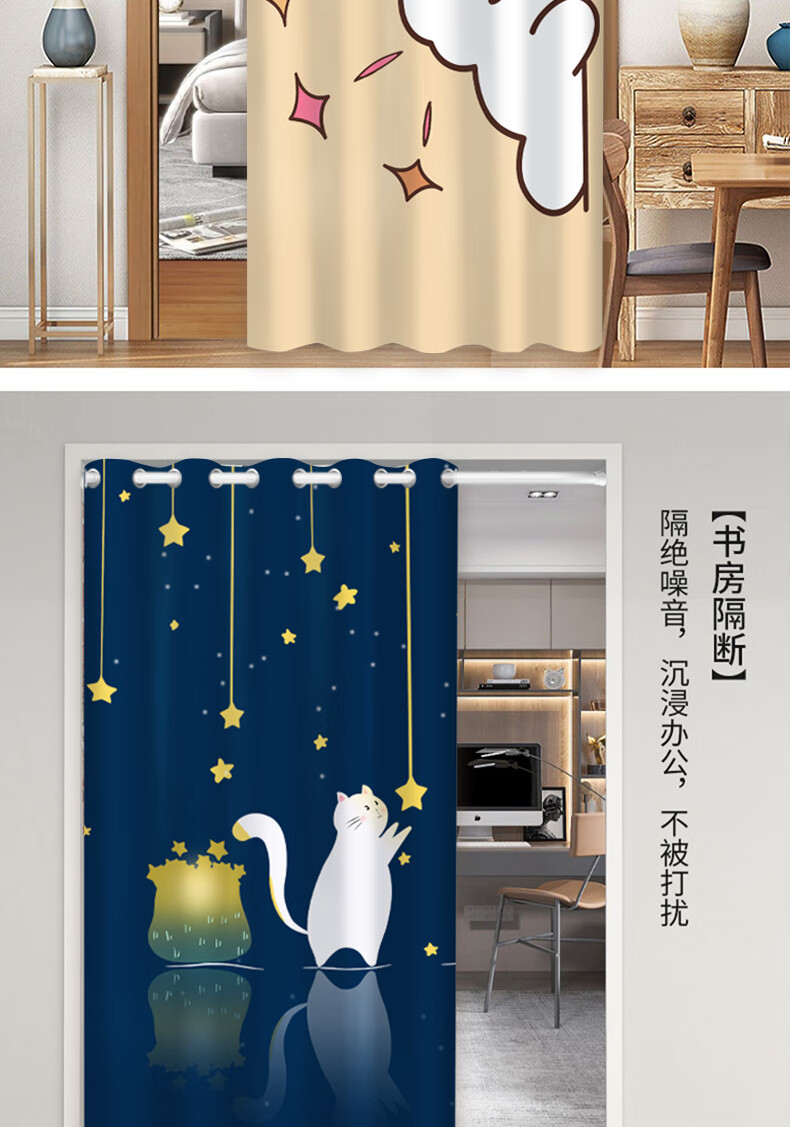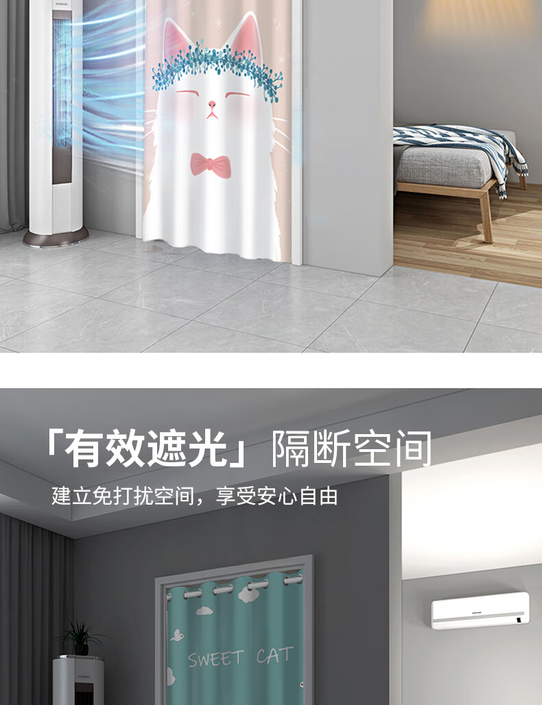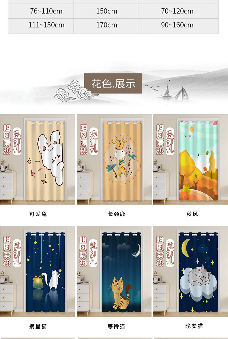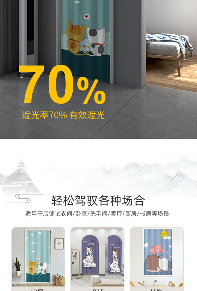 尔青岚卡通门帘免打孔 卧室客厅遮挡帘 空调暖气房隔断帘卫生间隐私挂帘 水彩春天 【适合110-150门宽】帘宽170x240
