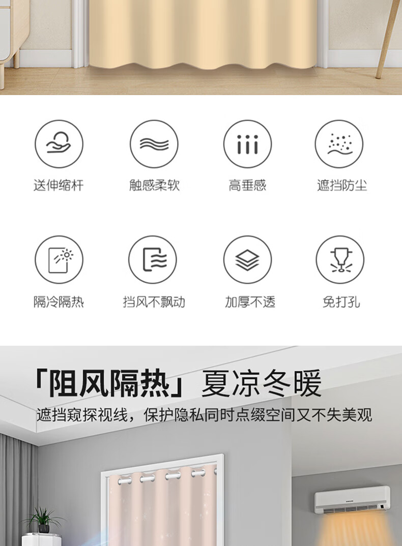 派友简易窗帘遮光卫生间办公室客厅阳台遮阳卷帘升降卷拉式粘贴免打孔 全遮光-浅灰 支架宽1.9x高2米【布料1.86】 个
