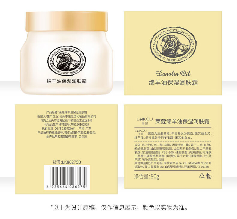 【精选】绵羊油90g保湿秋冬滋润护肤面fda化妆品 单瓶 90g