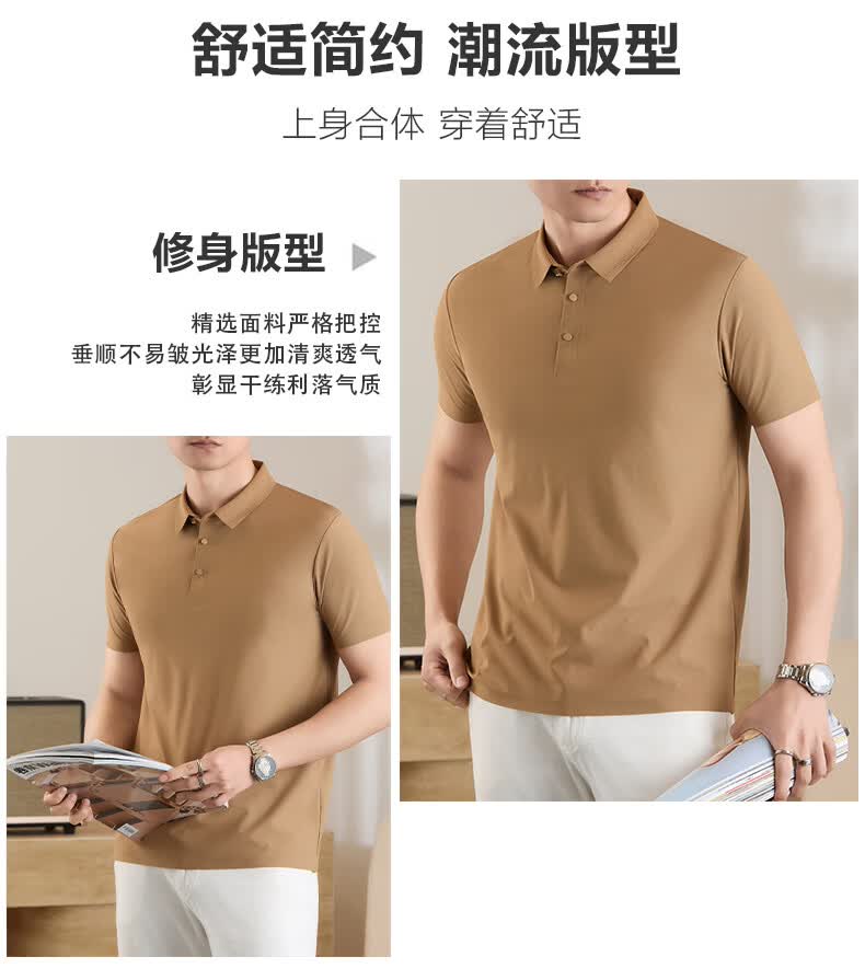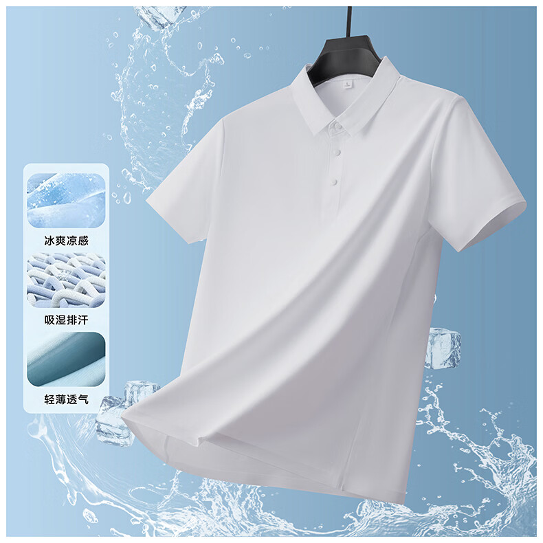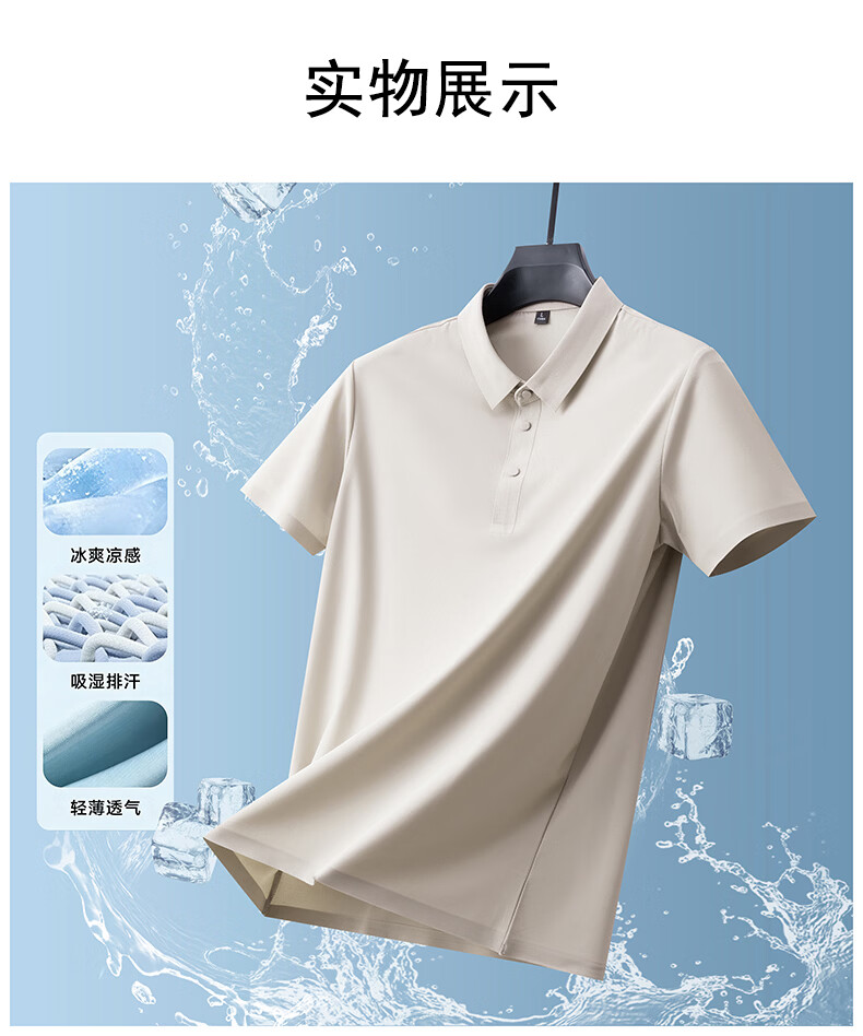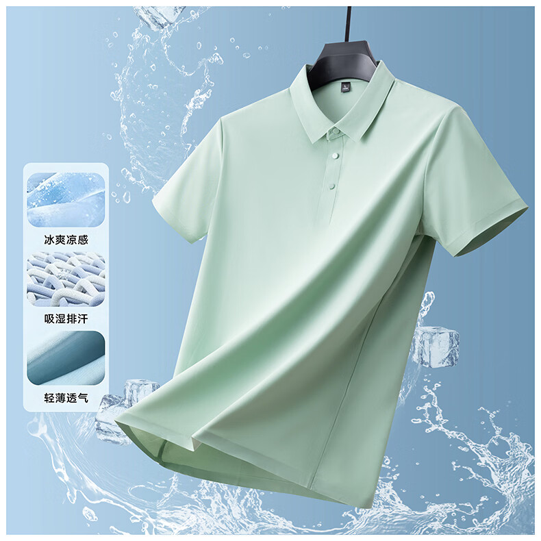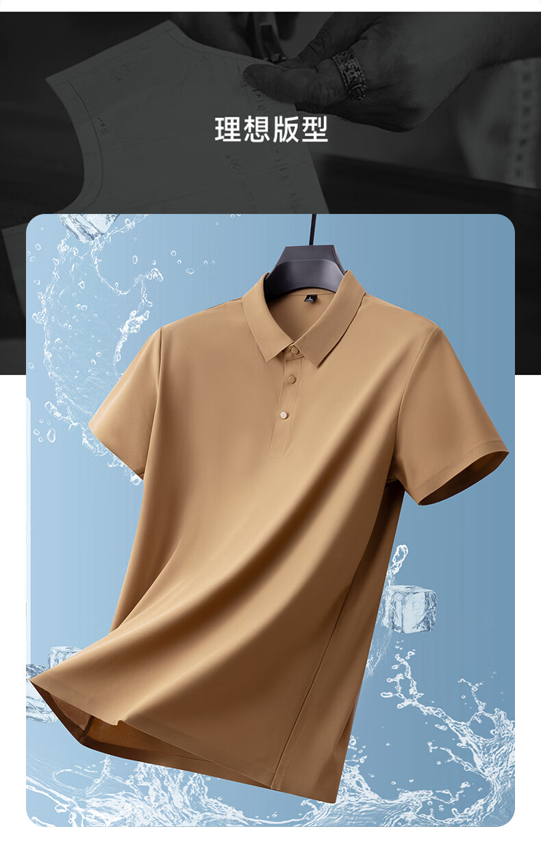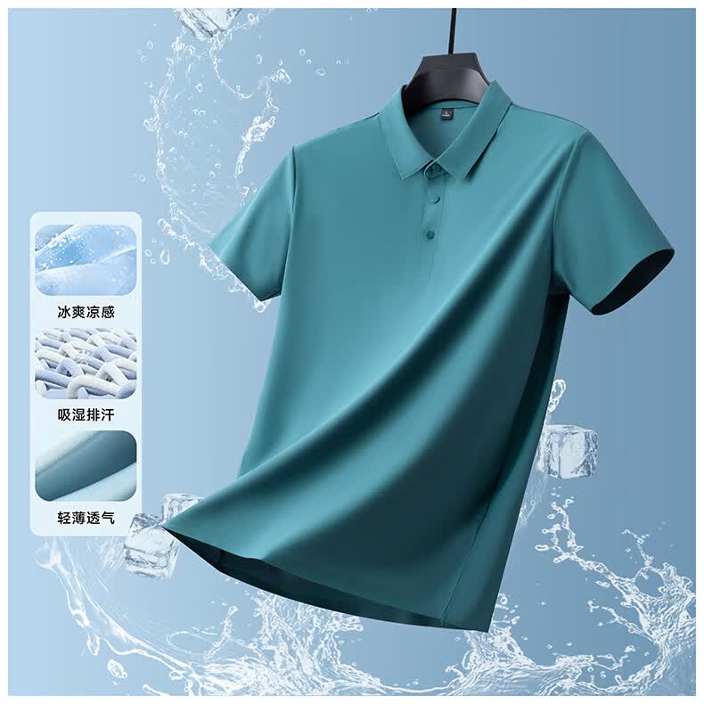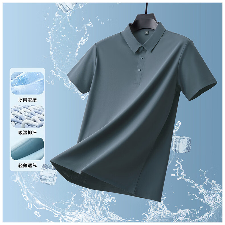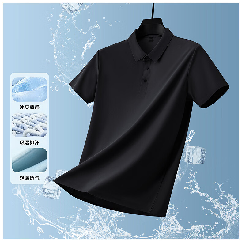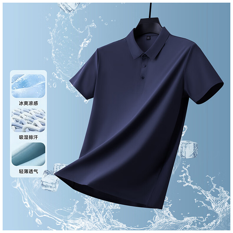 雅鹿无痕冰丝短袖t恤男夏季纯色翻领男士休闲体恤衫中青年男装 藏青 XL (建议125-140斤)