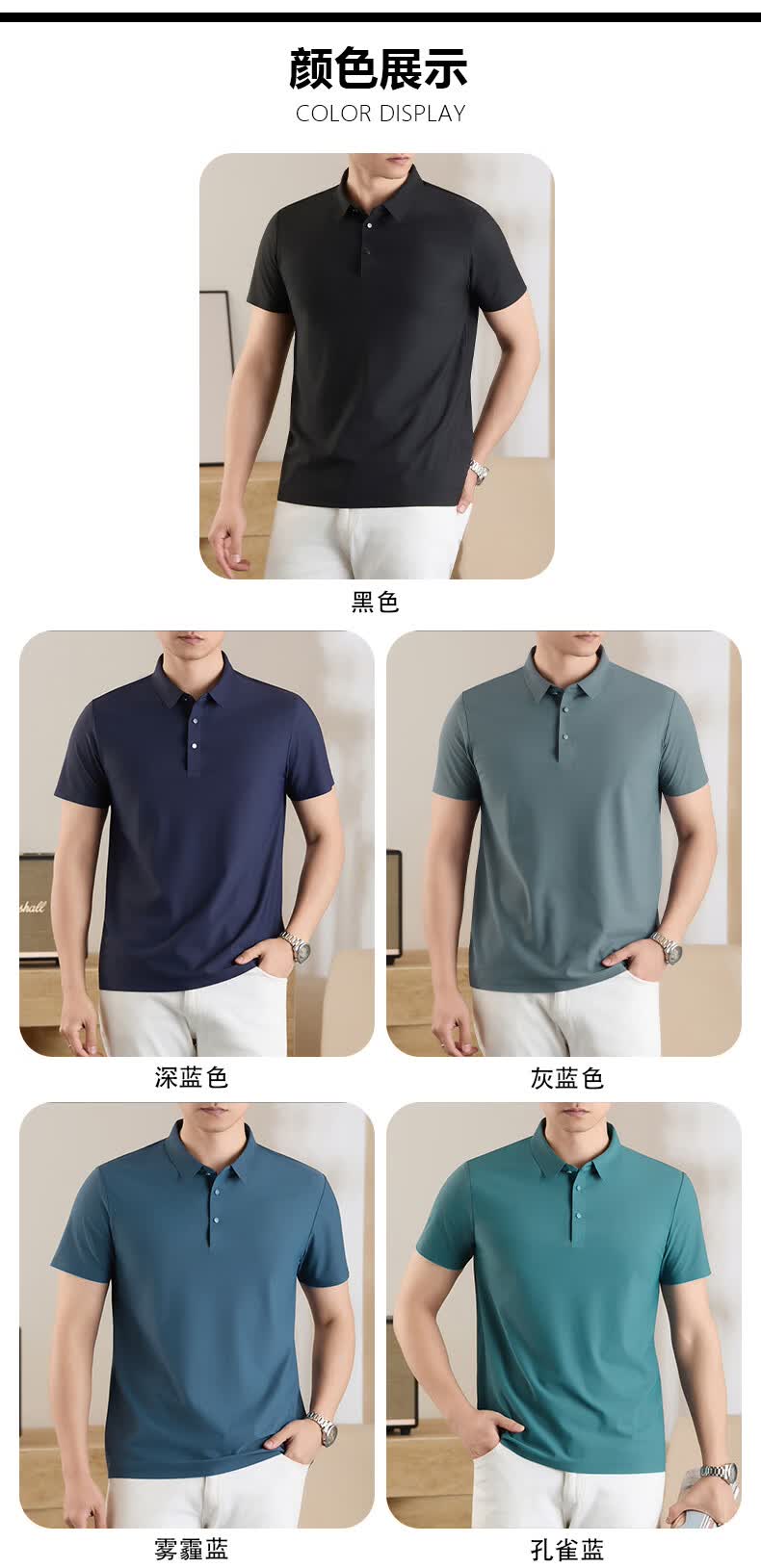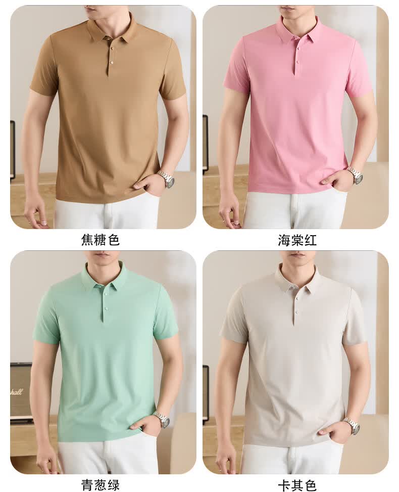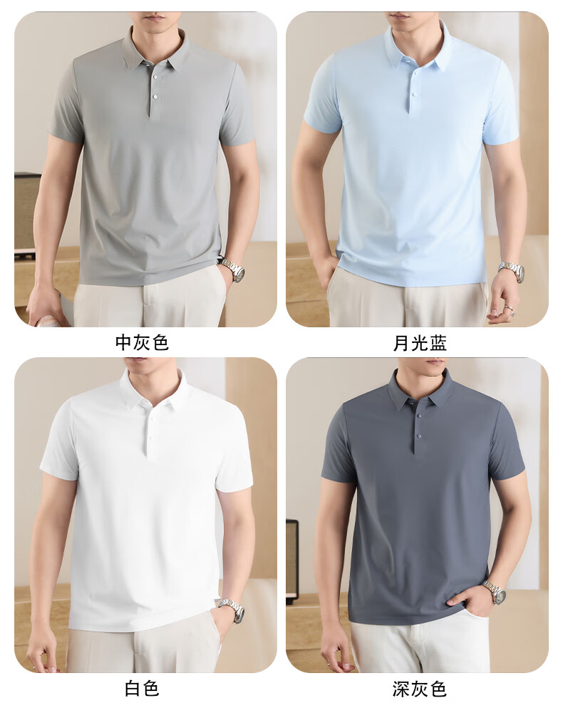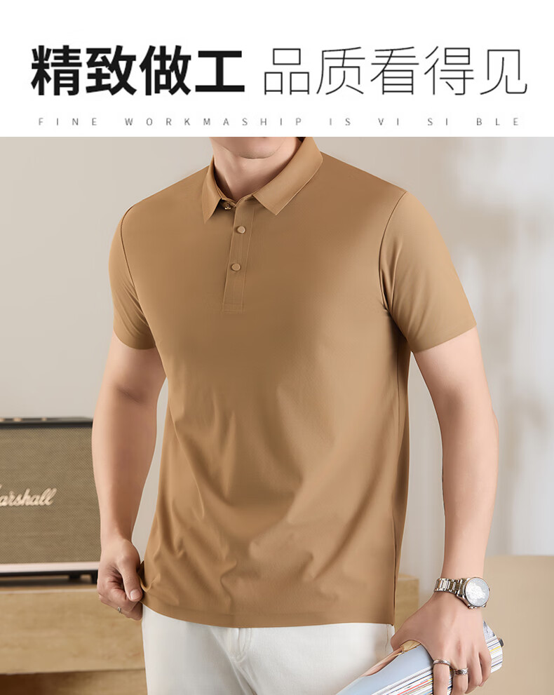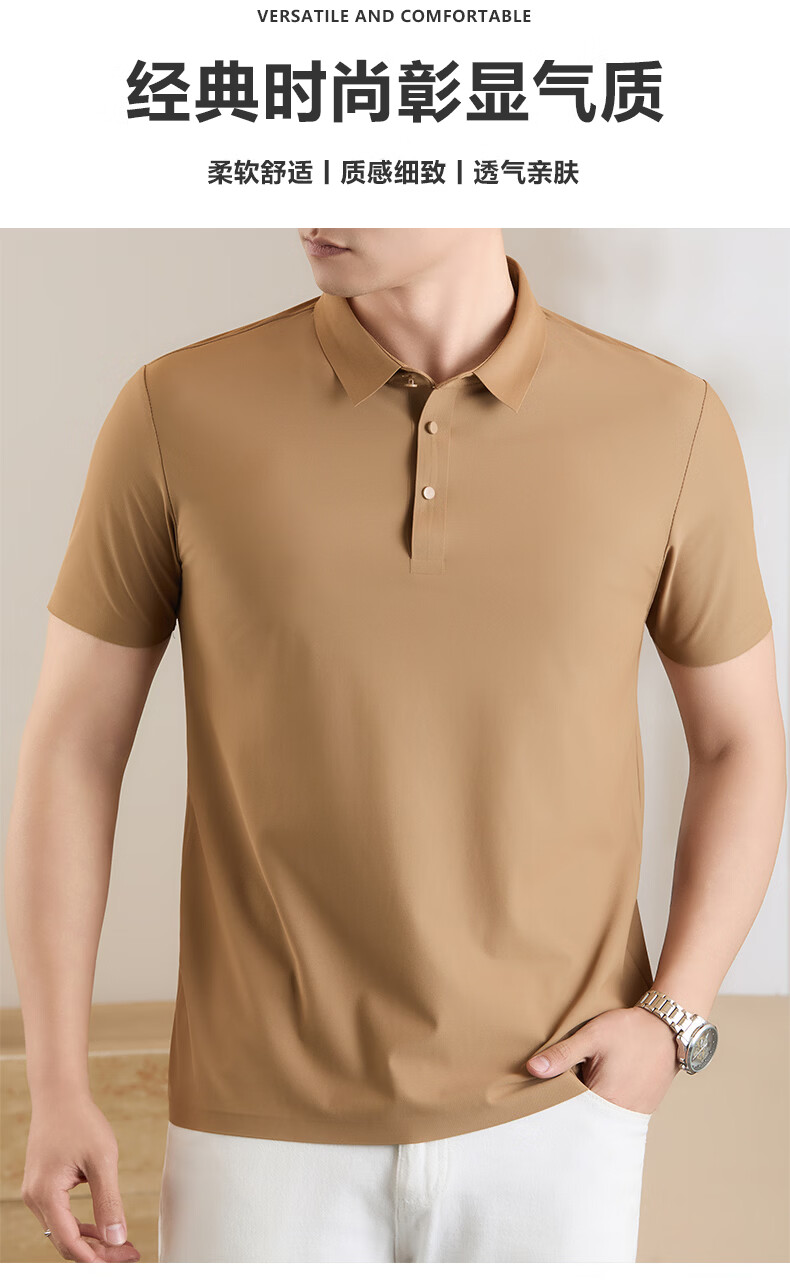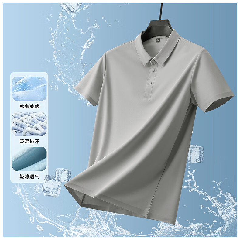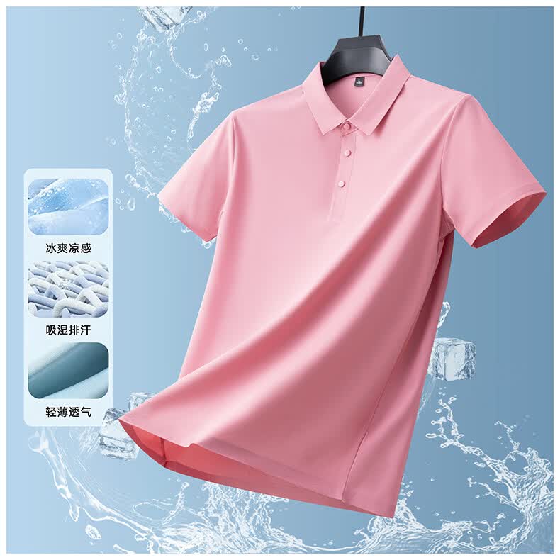 雅鹿无痕冰丝短袖t恤男夏季纯色翻领男士休闲体恤衫中青年男装 藏青 XL (建议125-140斤)