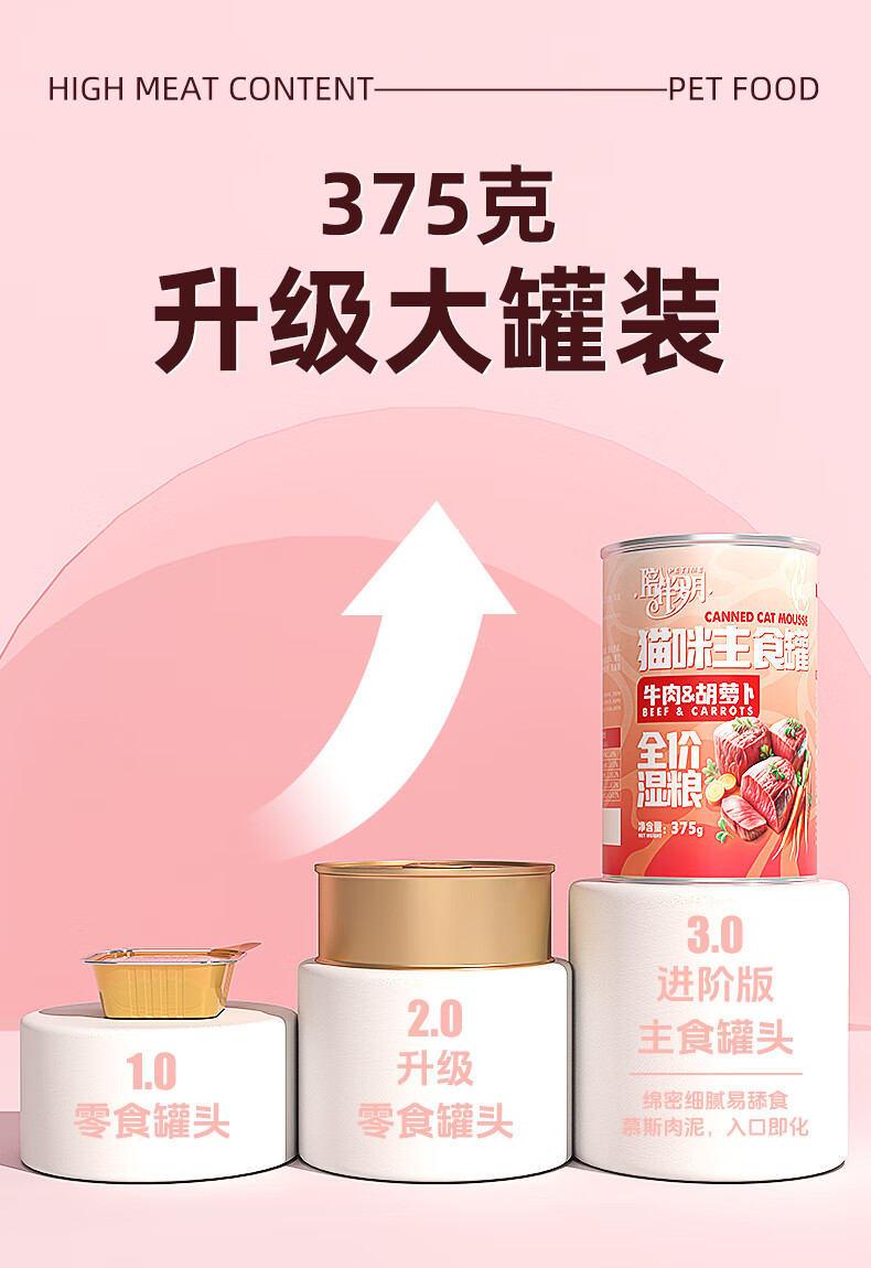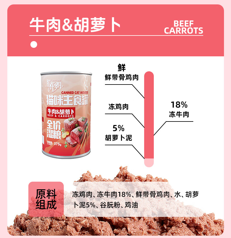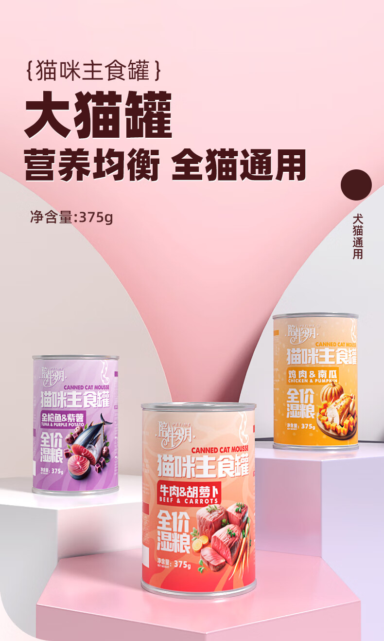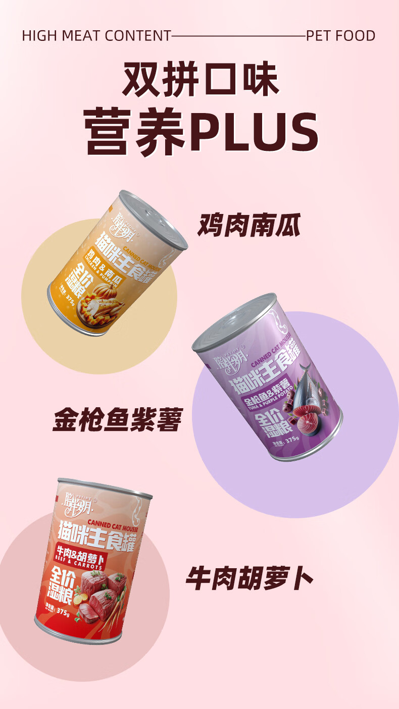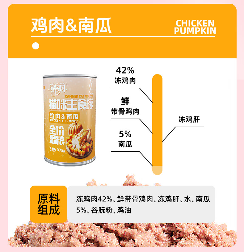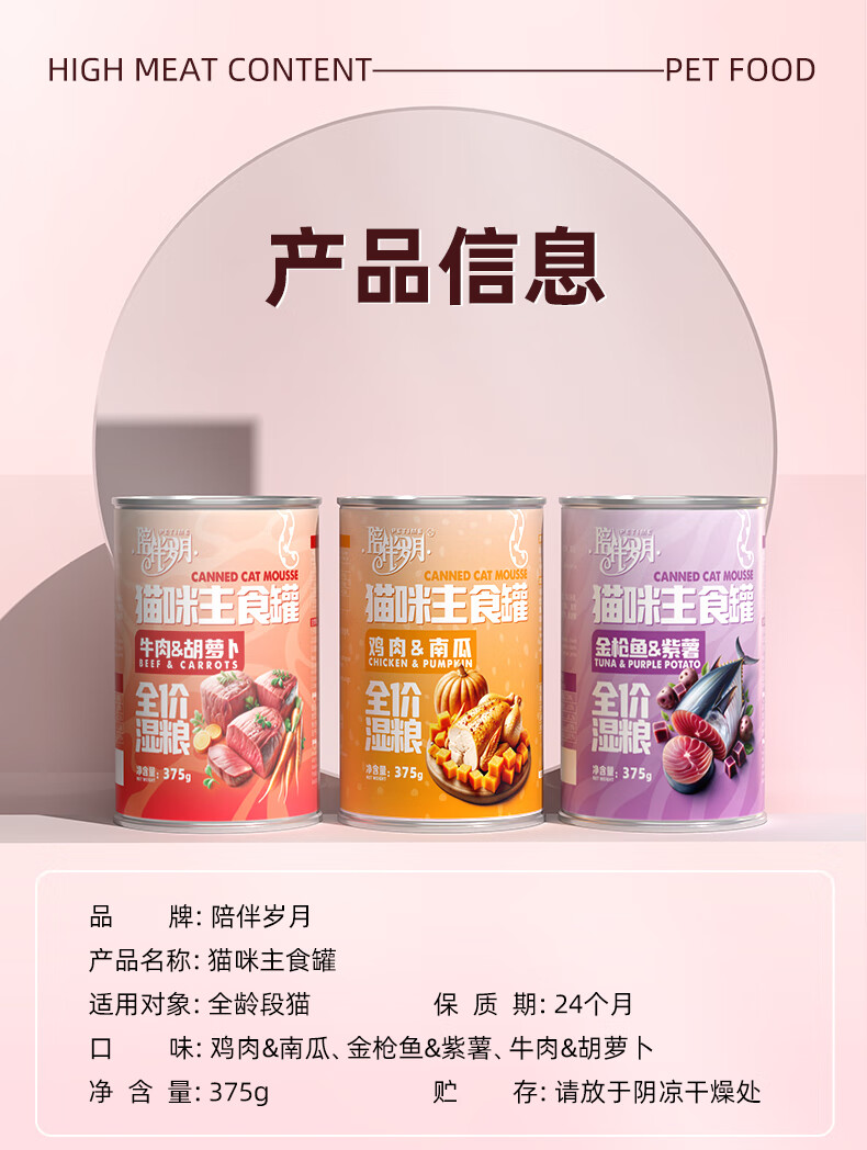 陪伴岁月猫罐头主食罐补充营养猫咪零食成幼猫全价湿粮 鸡肉+南瓜味 375g*6罐
