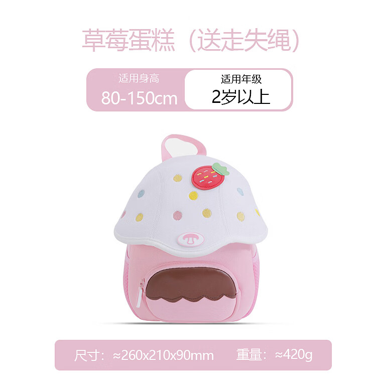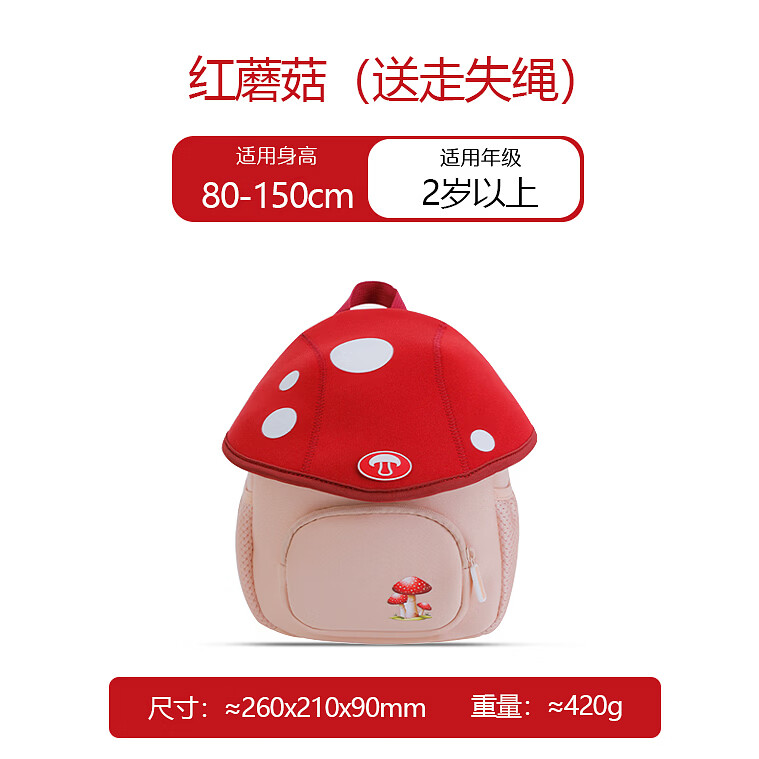 托马斯1-5岁宝宝幼儿园书包迷你可爱蘑菇小背包超轻便儿童双肩包 红色-草莓双肩包