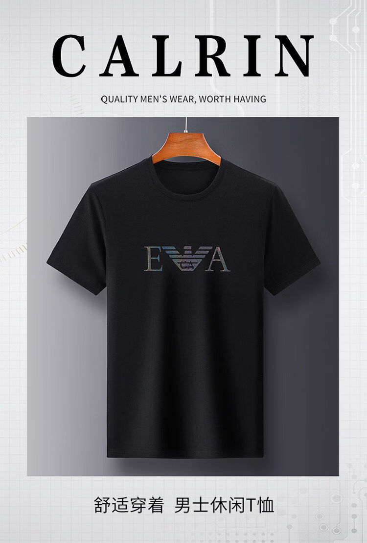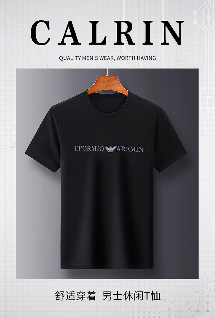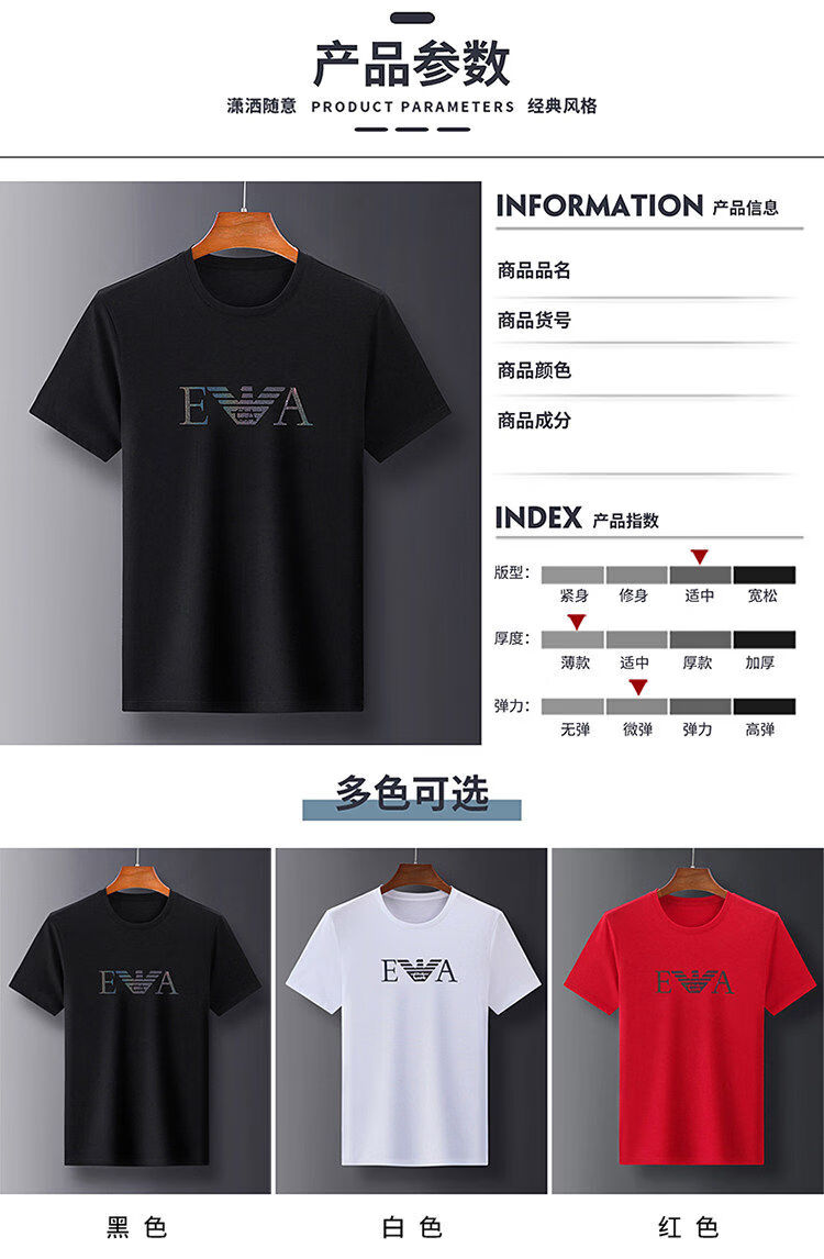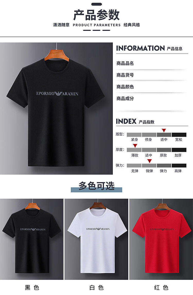 阿玛尼(ARMANI)正品2026新款男士夏季薄款桑蚕丝短袖t恤男高端名牌冰 丝光棉上衣 国际一线品牌20002白色 M _(建议90-120斤)