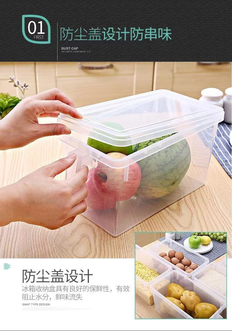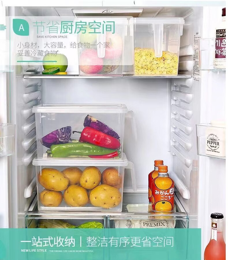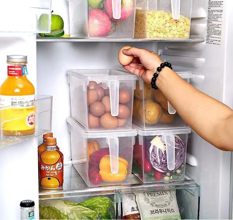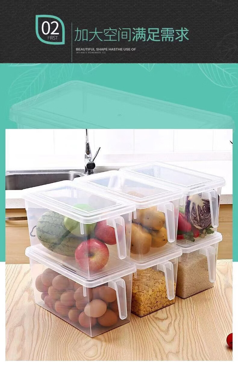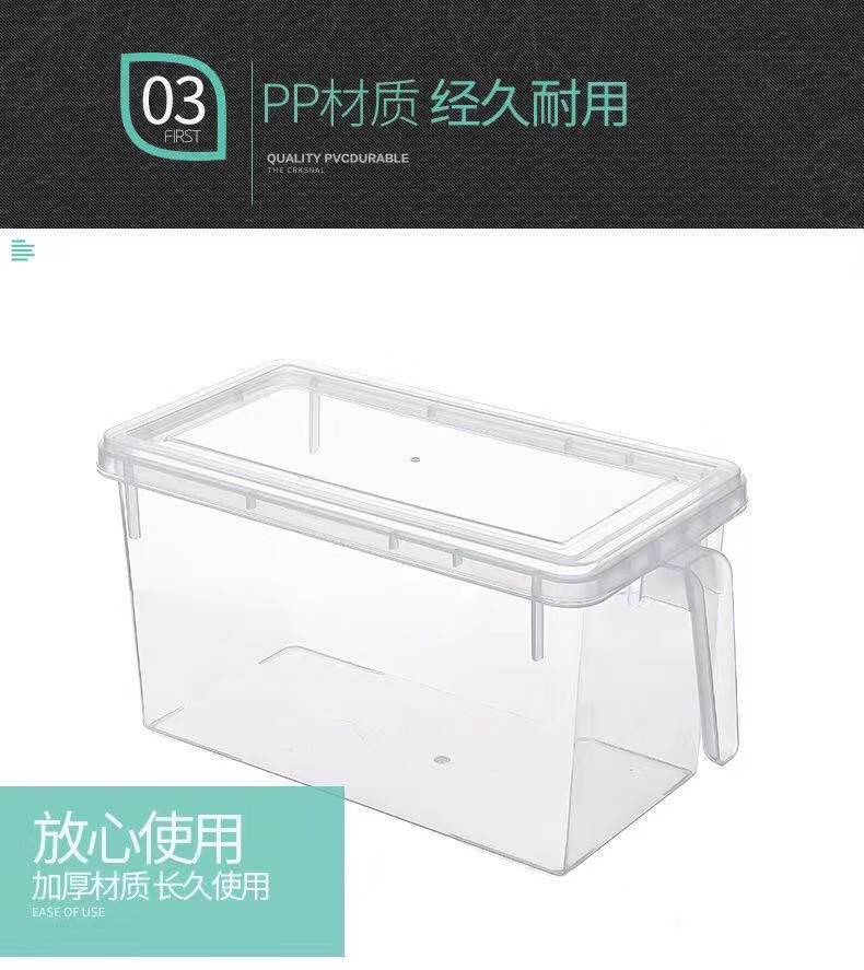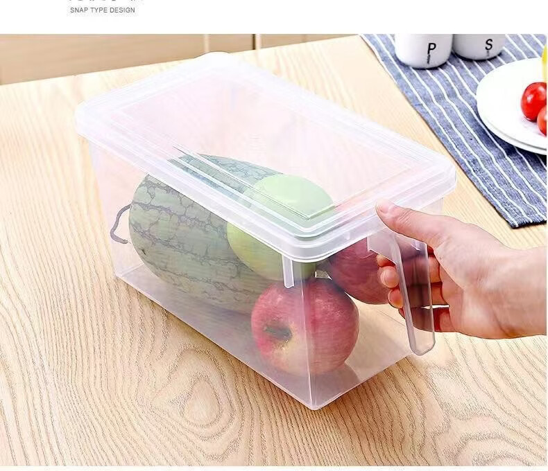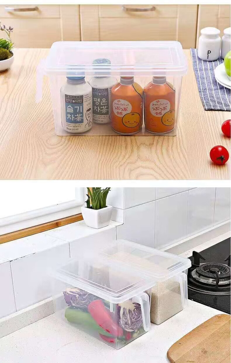 纳有风冰箱收纳盒杂物收纳盒储物密封带手柄收纳盒冰箱储物盒带盖保鲜盒 冰箱收纳盒5L大容量【透明白 带盖】*1
