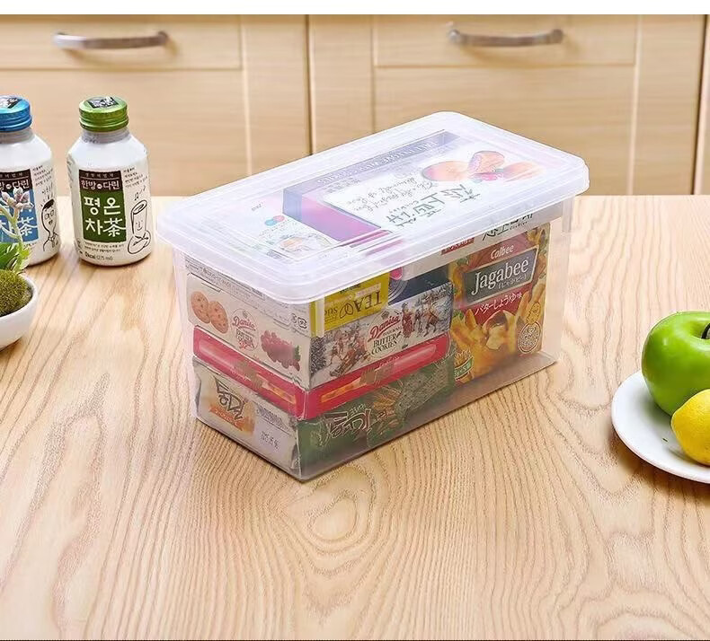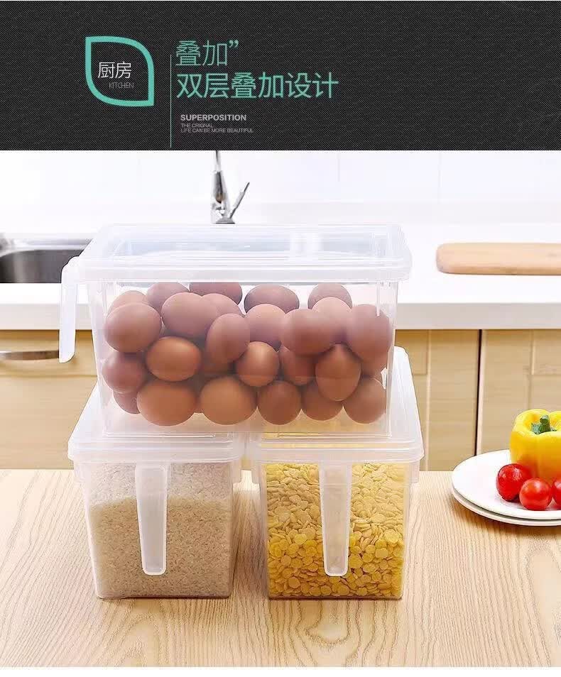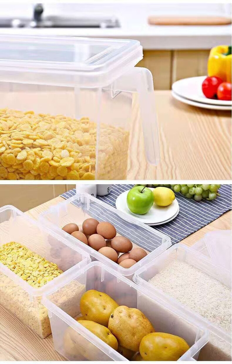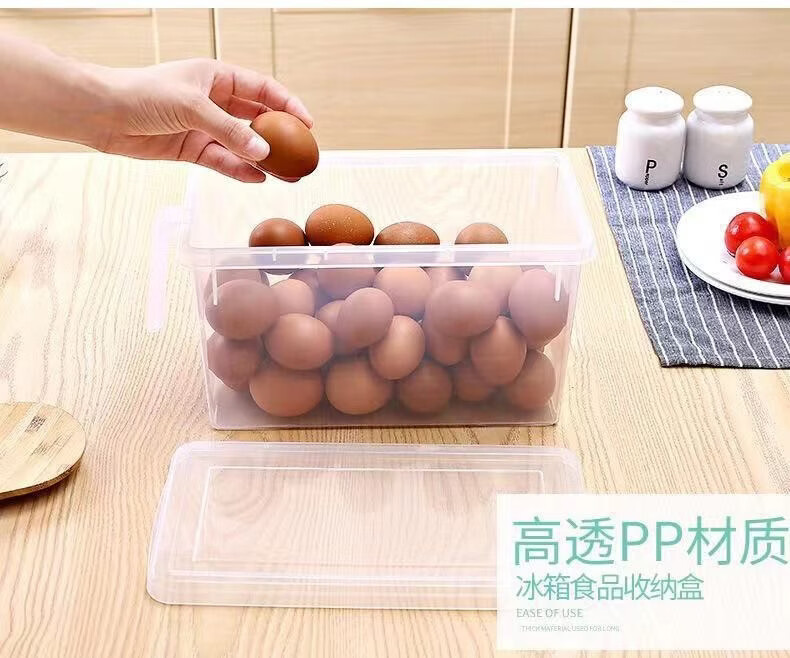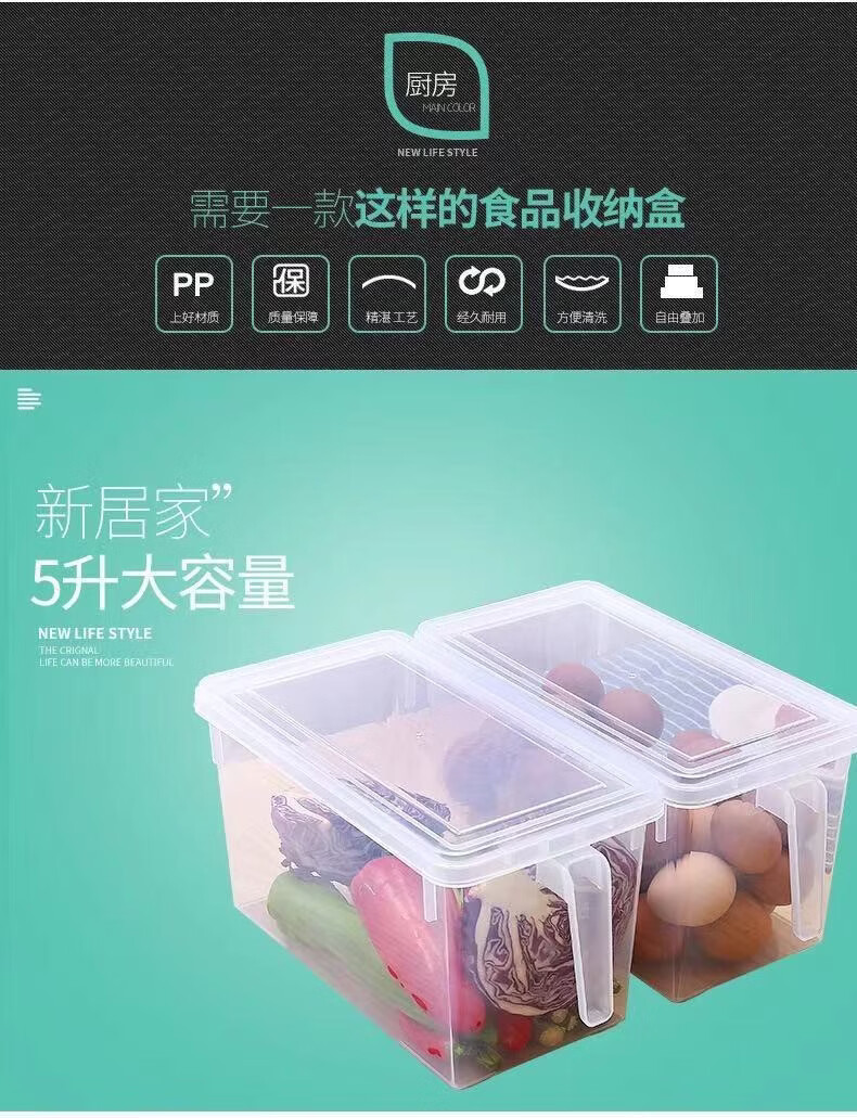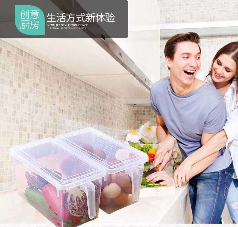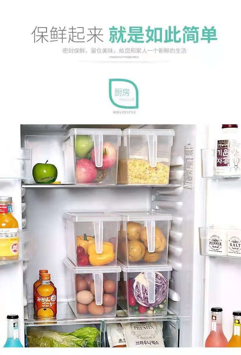 纳有风冰箱收纳盒杂物收纳盒储物密封带手柄收纳盒冰箱储物盒带盖保鲜盒 冰箱收纳盒5L大容量【透明白 带盖】*1