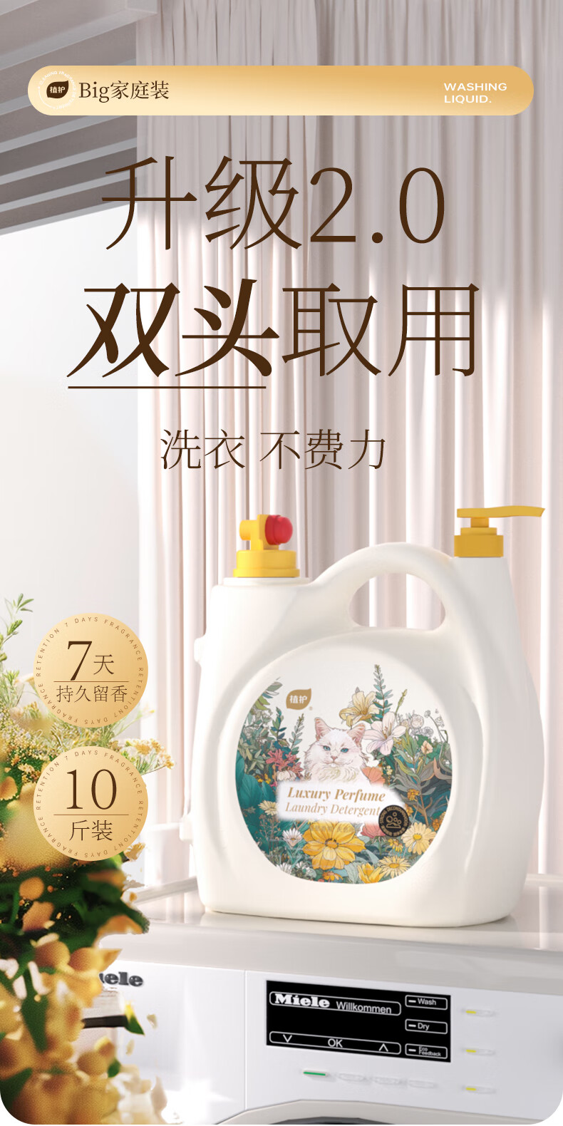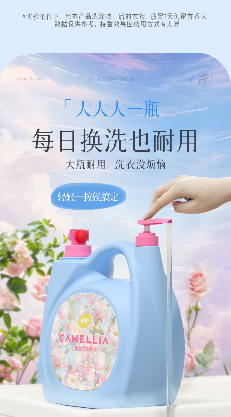 植护大大桶香水洗衣液 持久留香柔顺衣服去污渍深层洁净母婴可用家用 【仙境花园】10斤 留香去渍