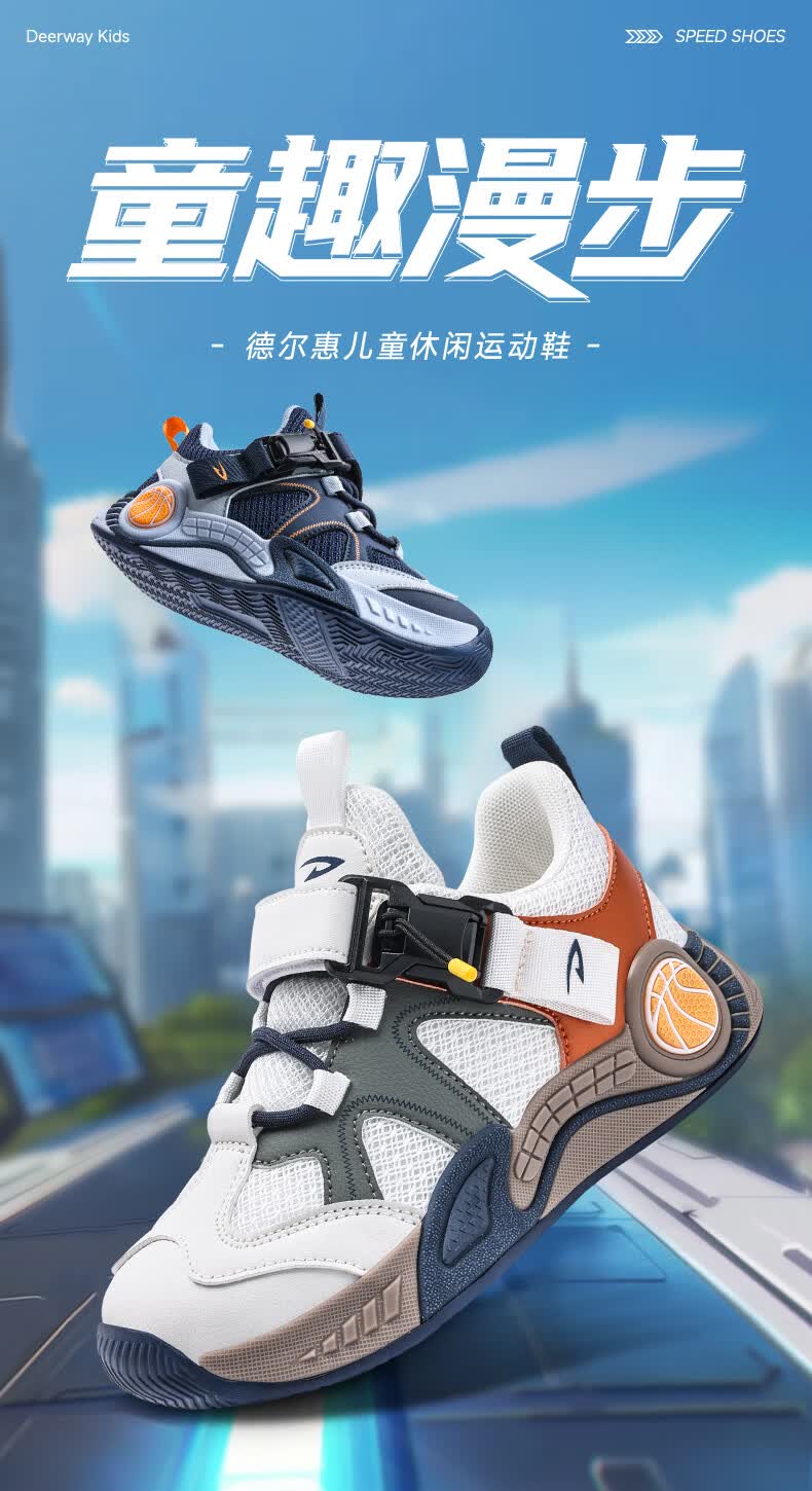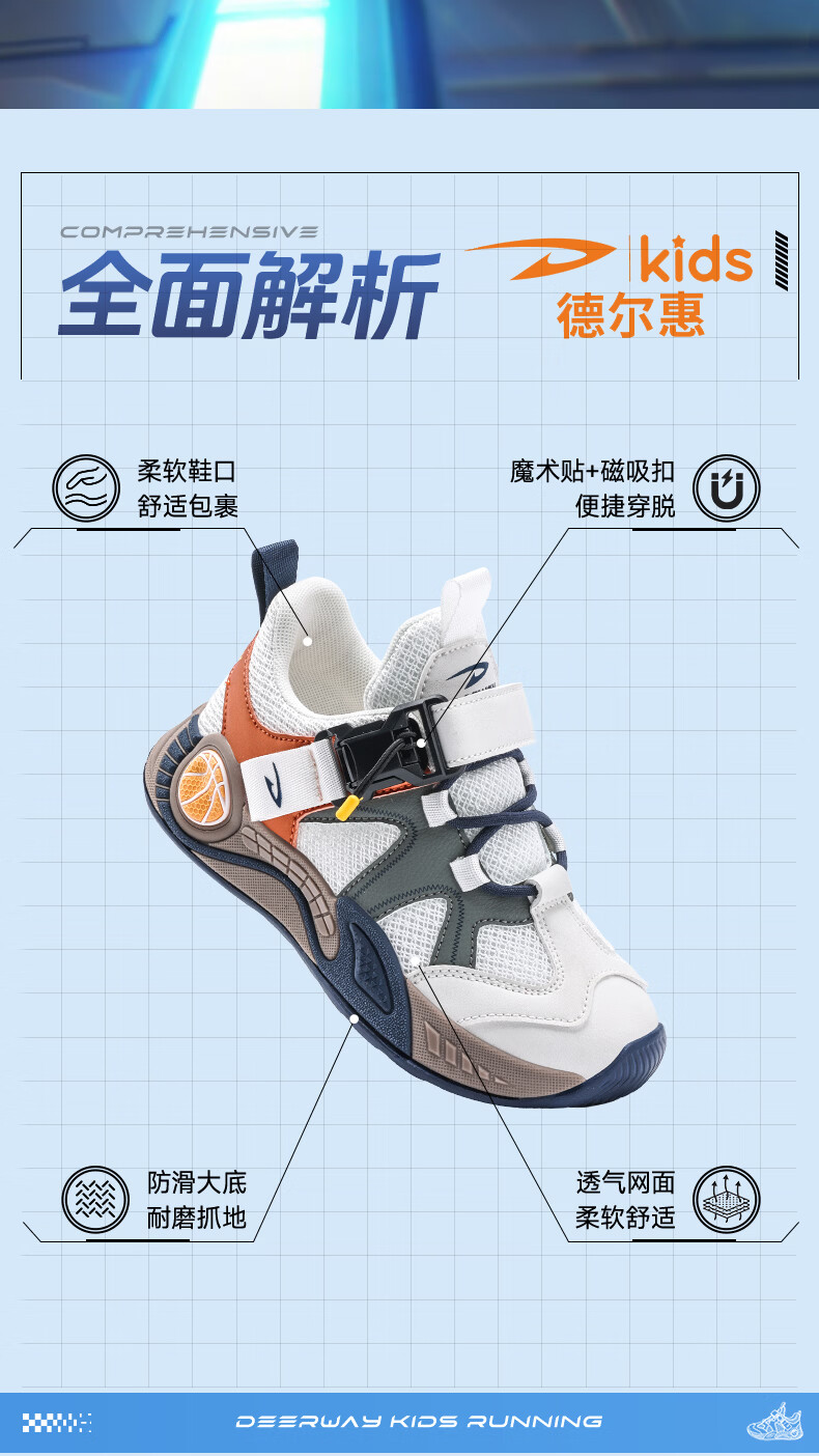 德尔惠男童鞋春季新款儿童运动鞋潮流低帮女童秋款校园学生板鞋跑步鞋 D2619蓝月【四季双网】 30 内长19.0/脚18.0