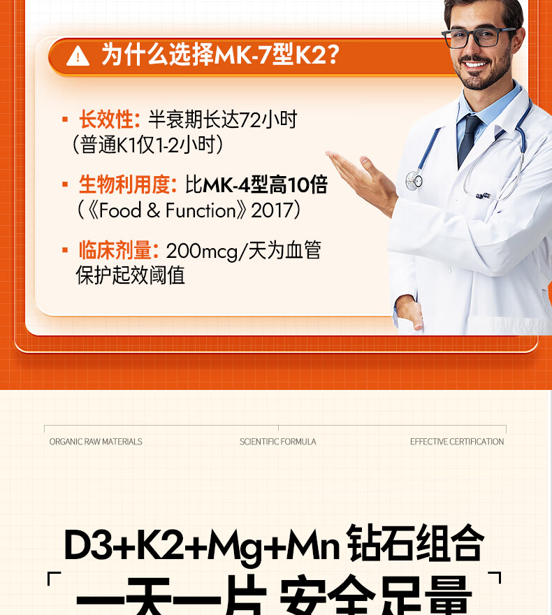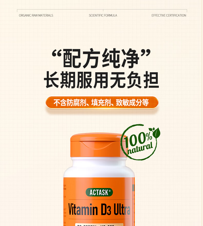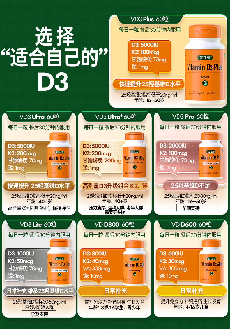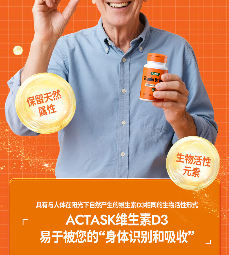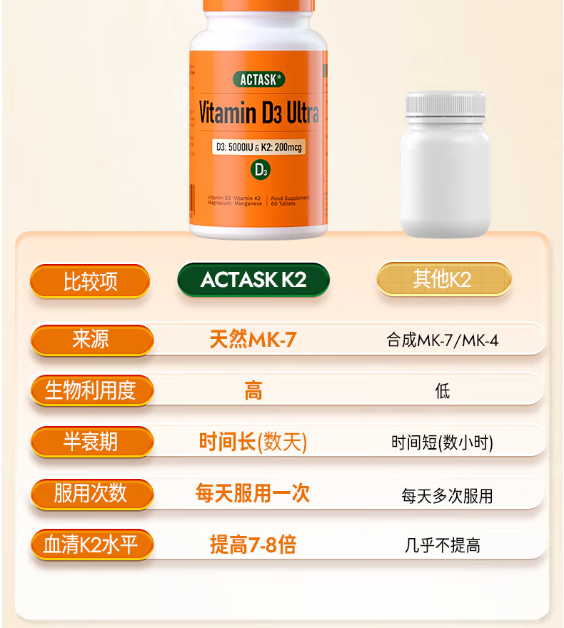 ACTASK【D3Ultra】5000iu维D3+200mcgK2+镁3合1维护心血管提升免疫力 60粒*1瓶 【推荐周期服用拍3瓶】 【抑制钙化/骨质疏松】3瓶