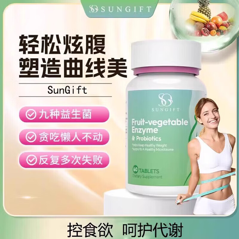 sungift果蔬酵素膳食纤维消化益生菌夜间酵素片身材管理大餐嗨吃 60粒*4瓶