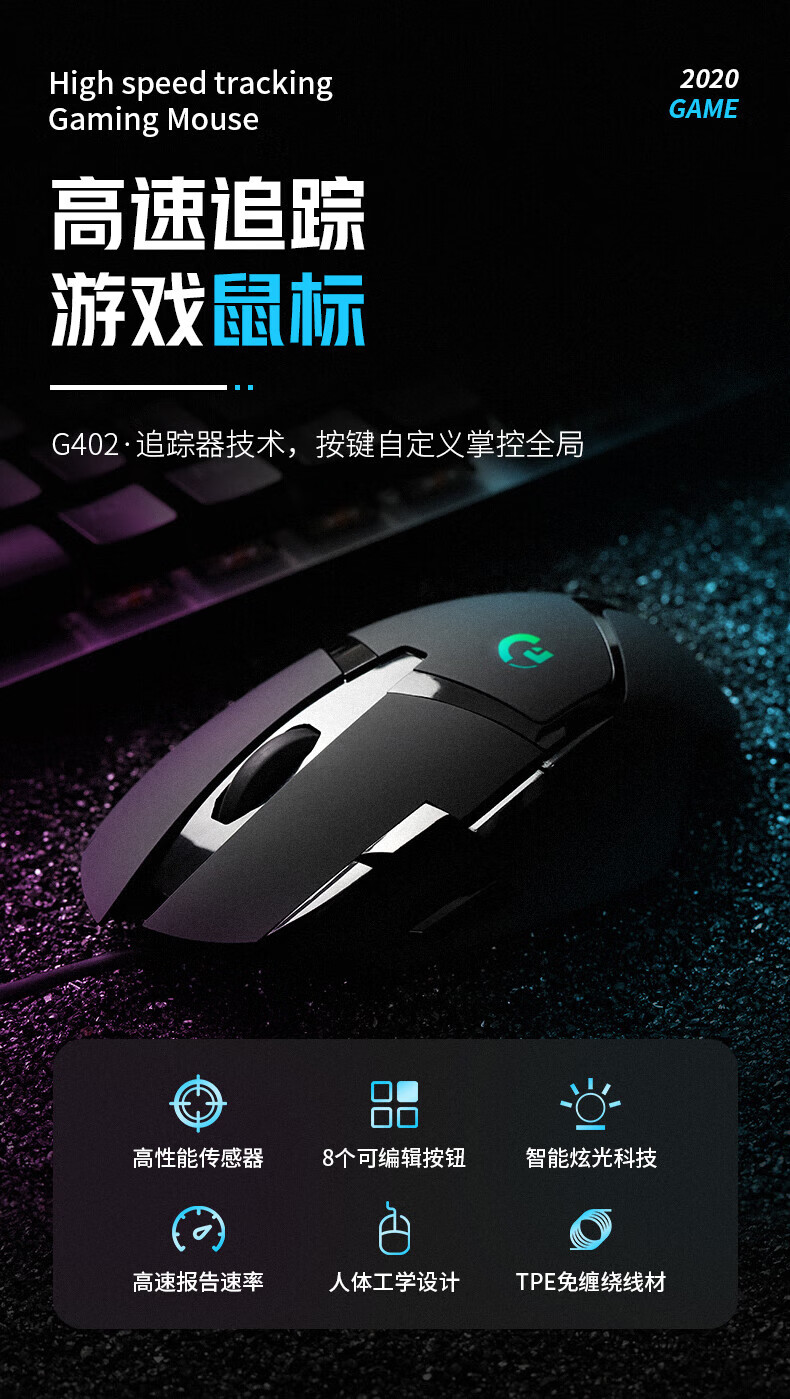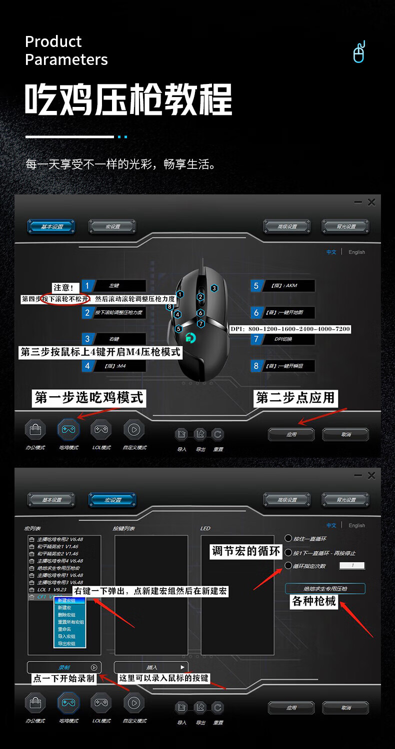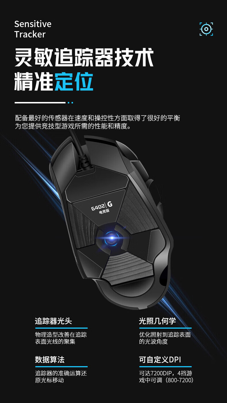 GANO电竞游戏G502鼠标LOL有线usb宏网吧压枪电竞宏定义吃鸡CF滑鼠笔记本台式黑神话悟空 G502熊猫版磨砂黑白【有线宏驱动7200DPI】