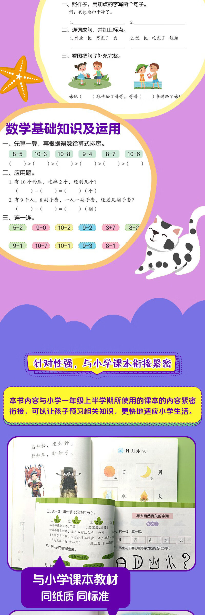 全套6本幼小衔接一日一练教材全套学前班幼升小数学思维训练借十法凑十法口算题10 20以内分解与组成练习册幼儿园中班大班加减法数学题 【大开本女孩喜欢的】全套8本公主换装贴纸书