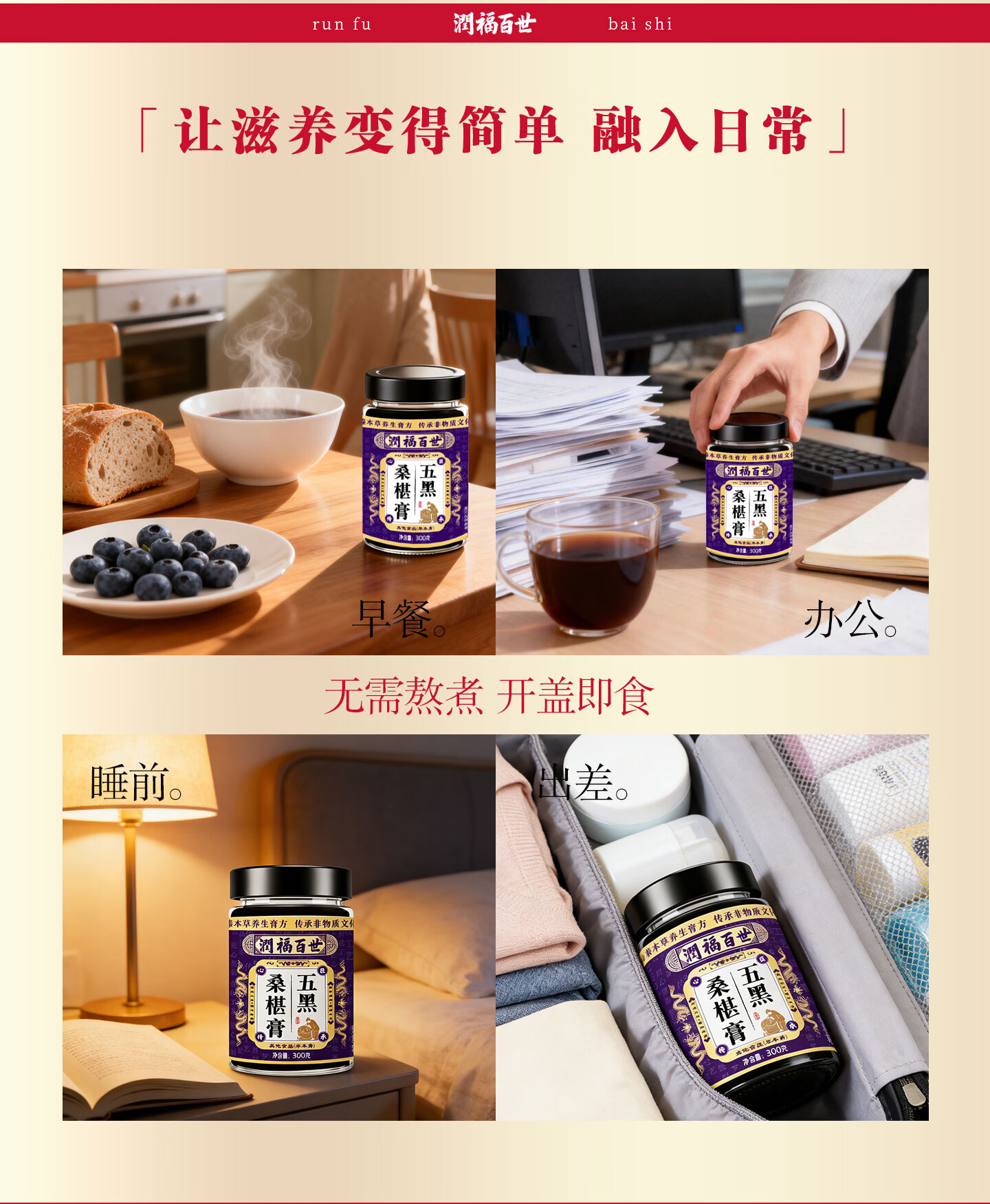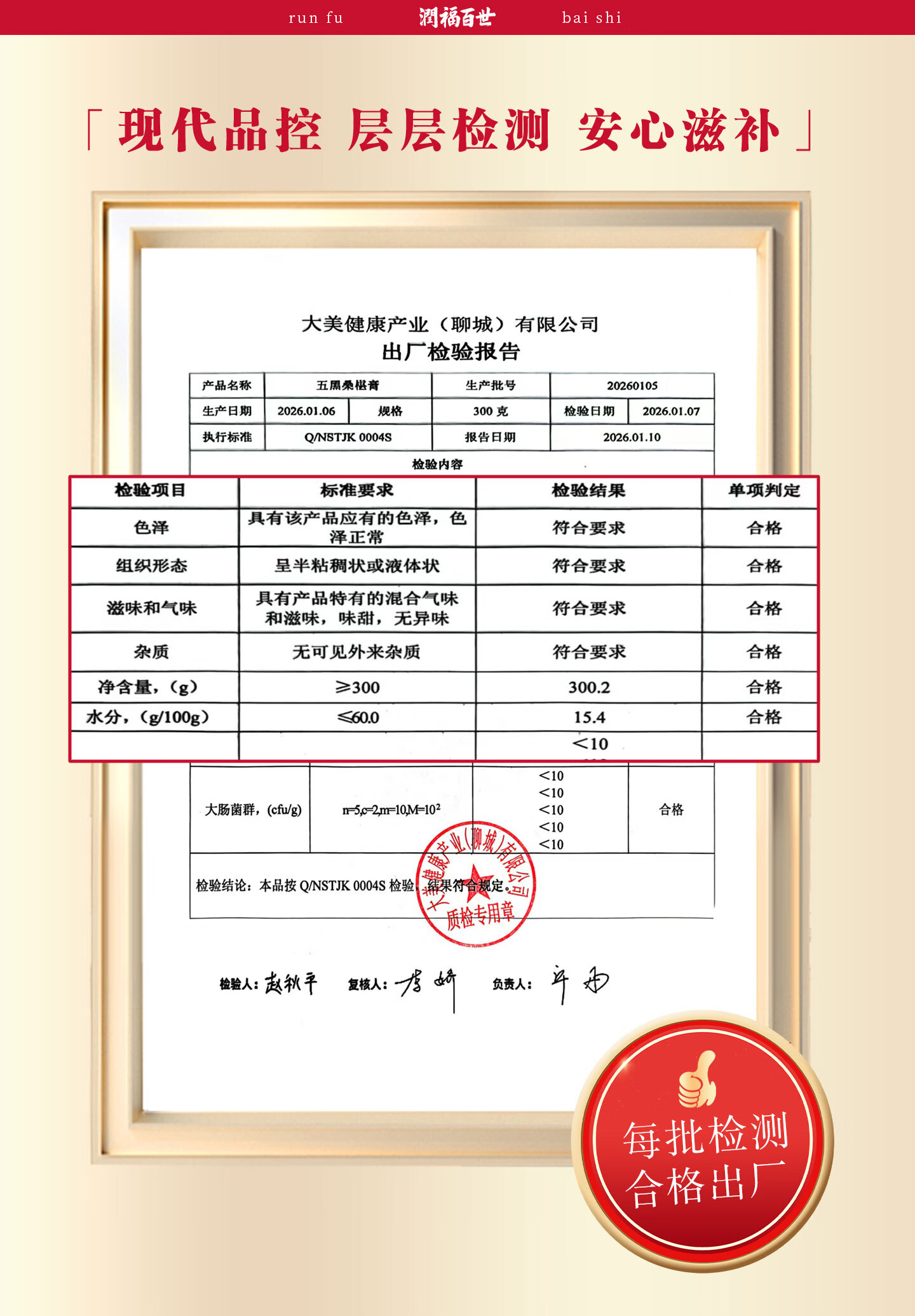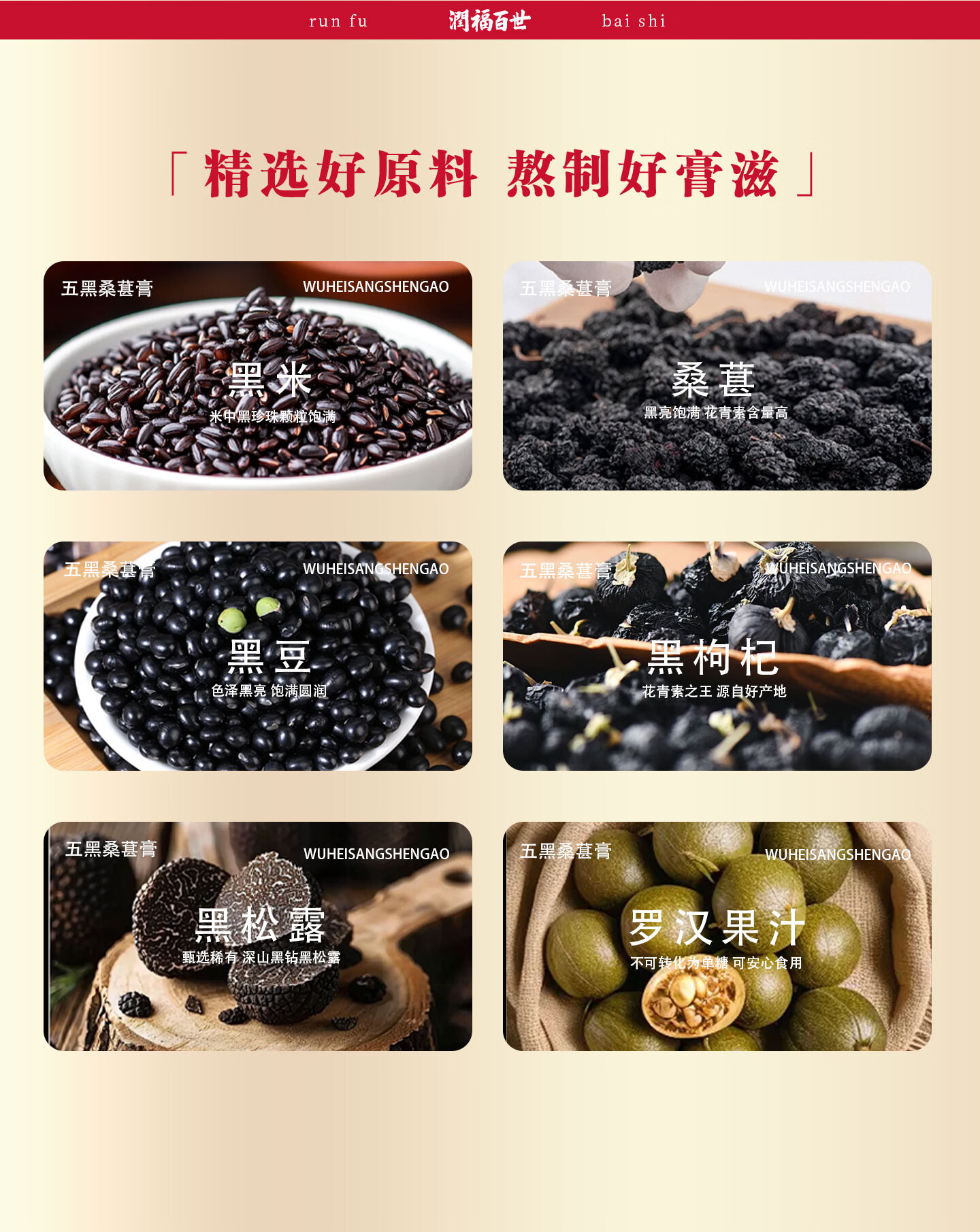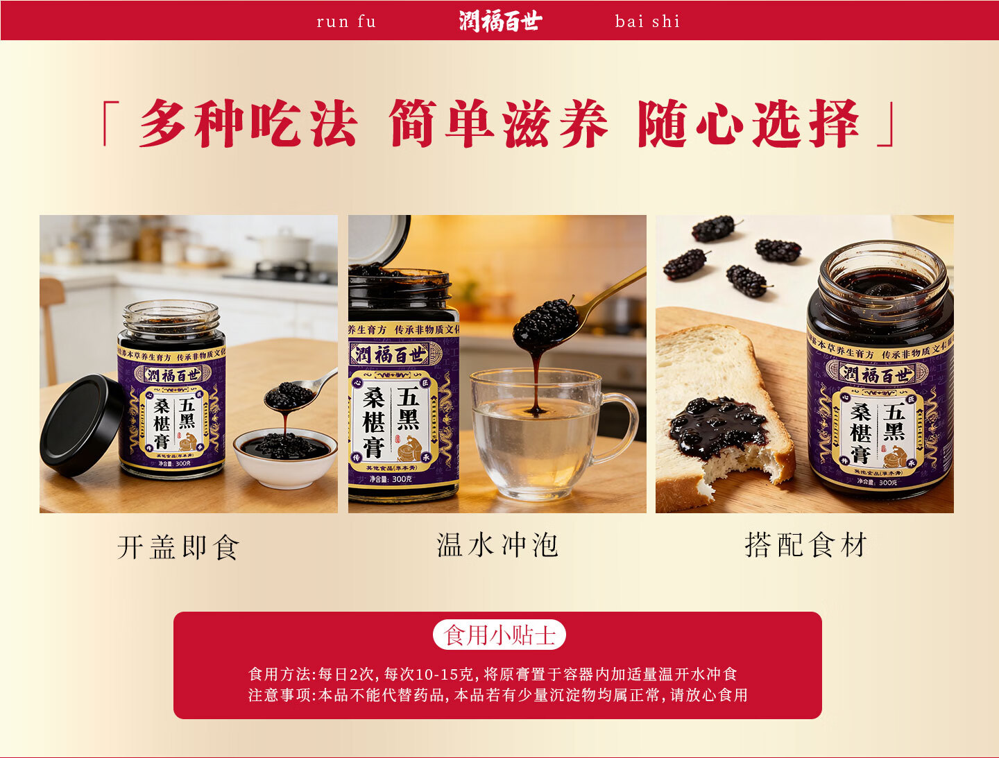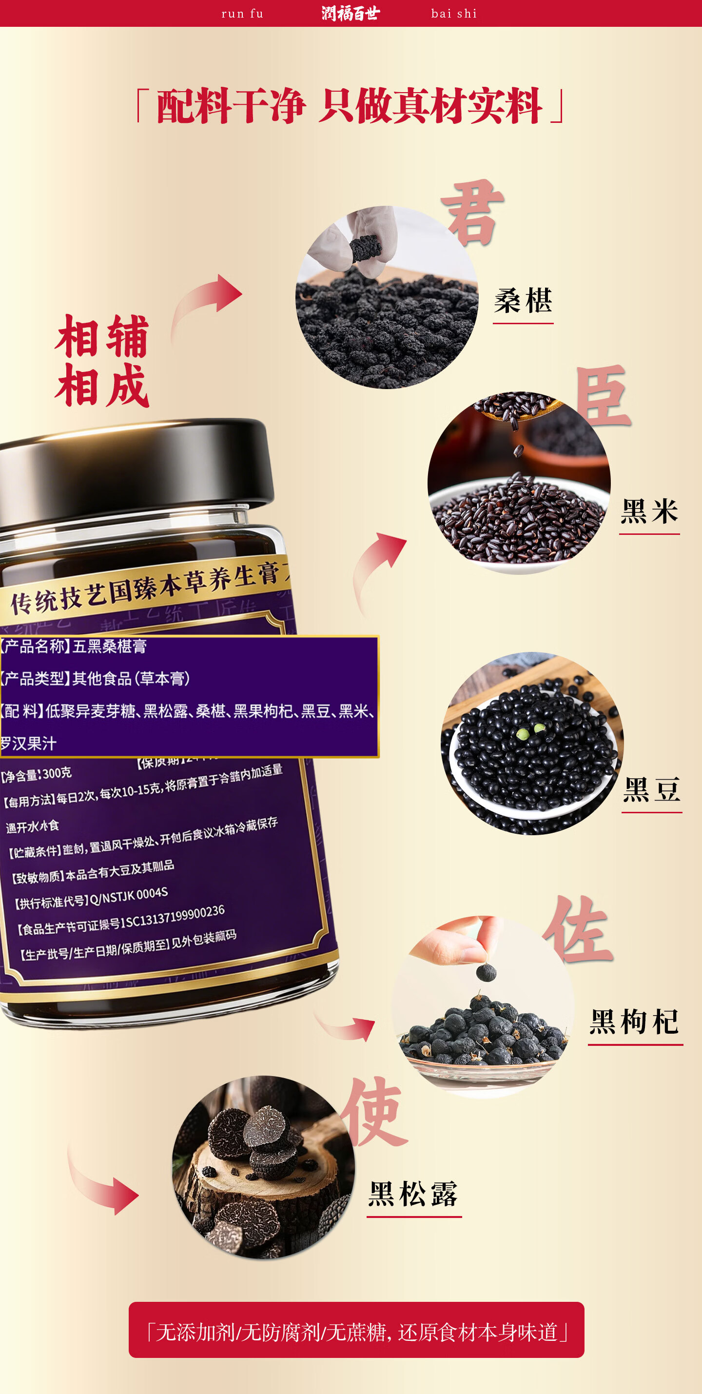 润福百世非遗膏滋五黑桑椹膏古方熬制养生膏中老年膏方桑葚膏祛湿化积 五黑膏 300g*6瓶 浓缩萃取