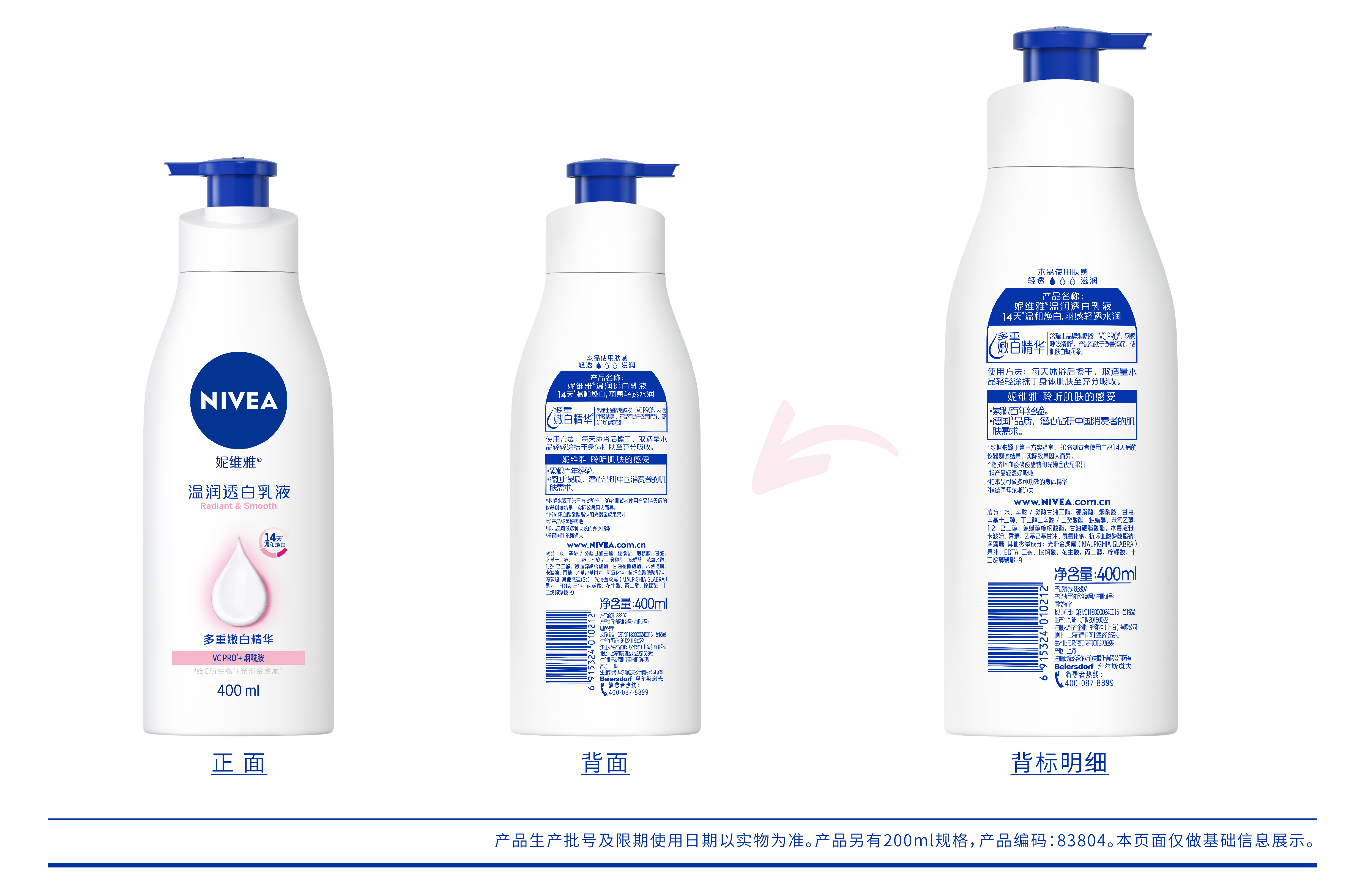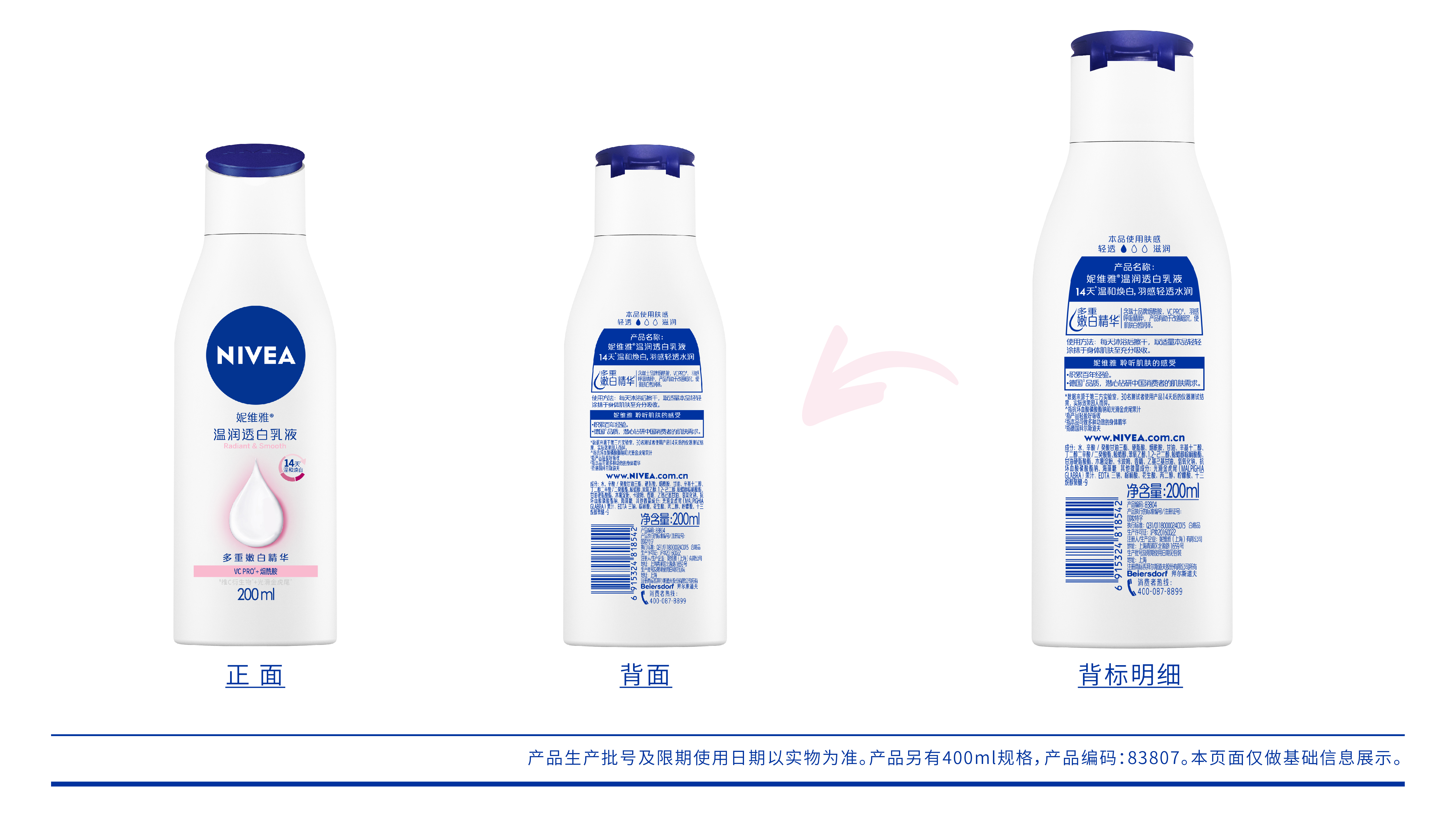 妮维雅(NIVEA)【孙颖莎同款】女士身体乳润肤滋润补水保湿美白特证礼物送女友 【有效美白】大白瓶200ml*2