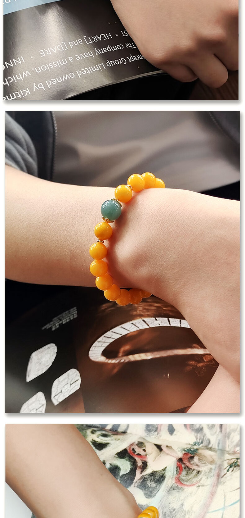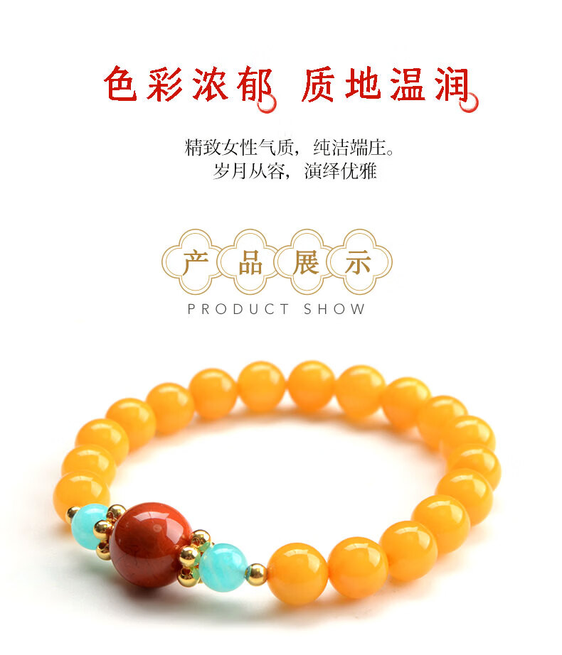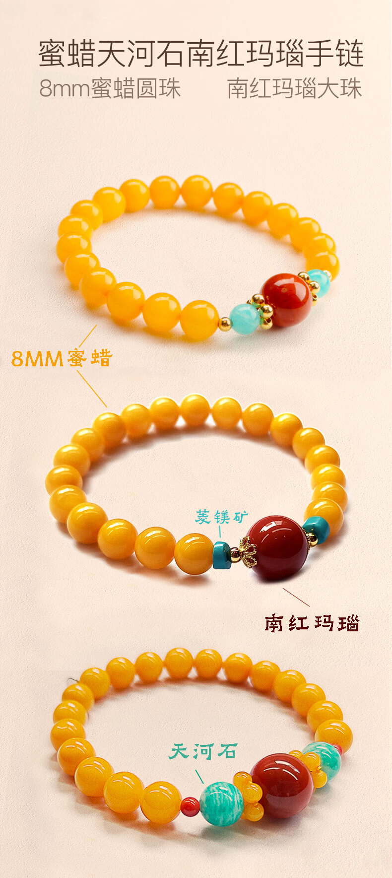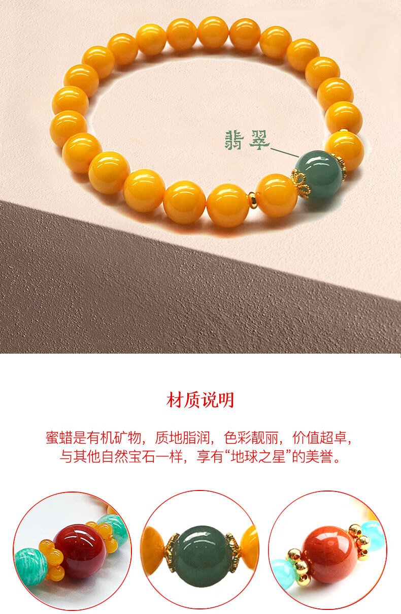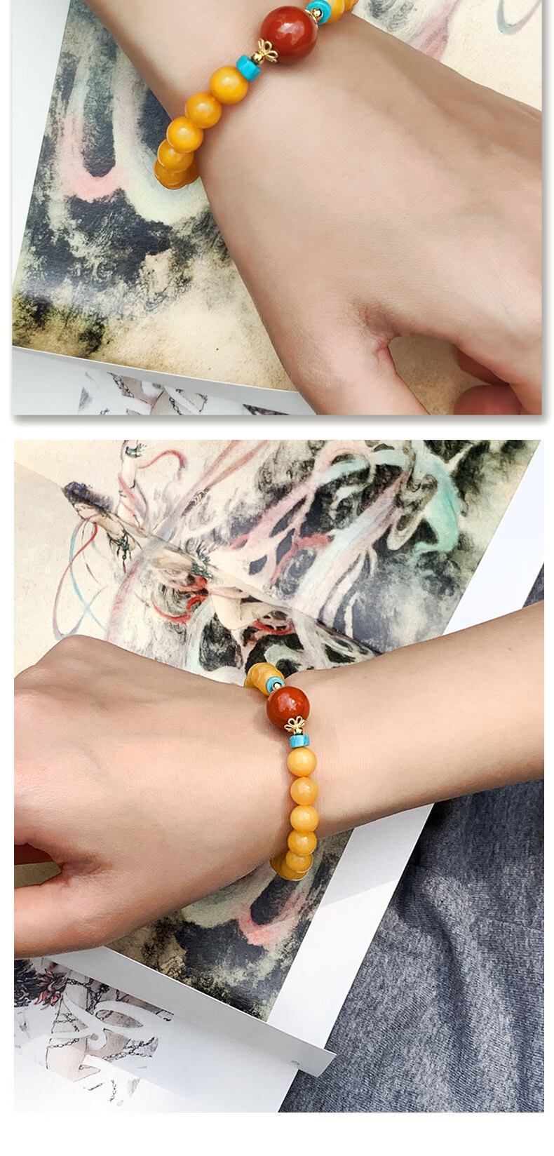 她世代【母亲节礼物】天然蜜蜡圆珠手串老蜜琥珀南红翡翠转运珠手链 南红款(866474)