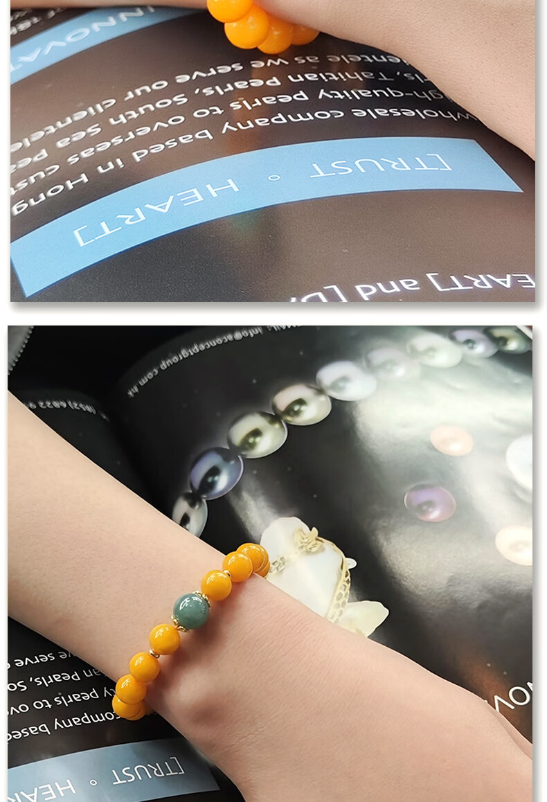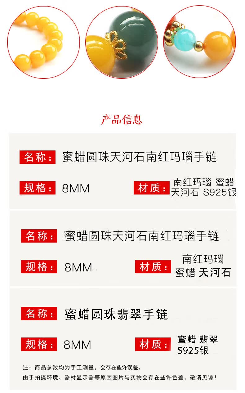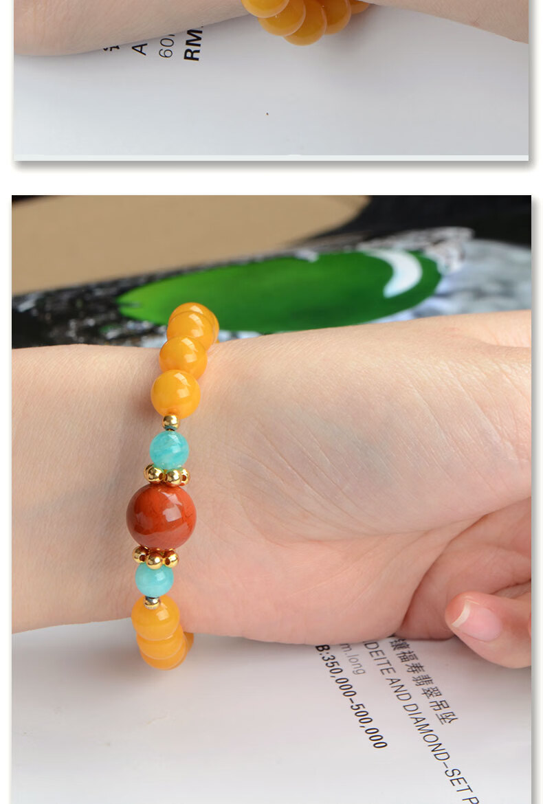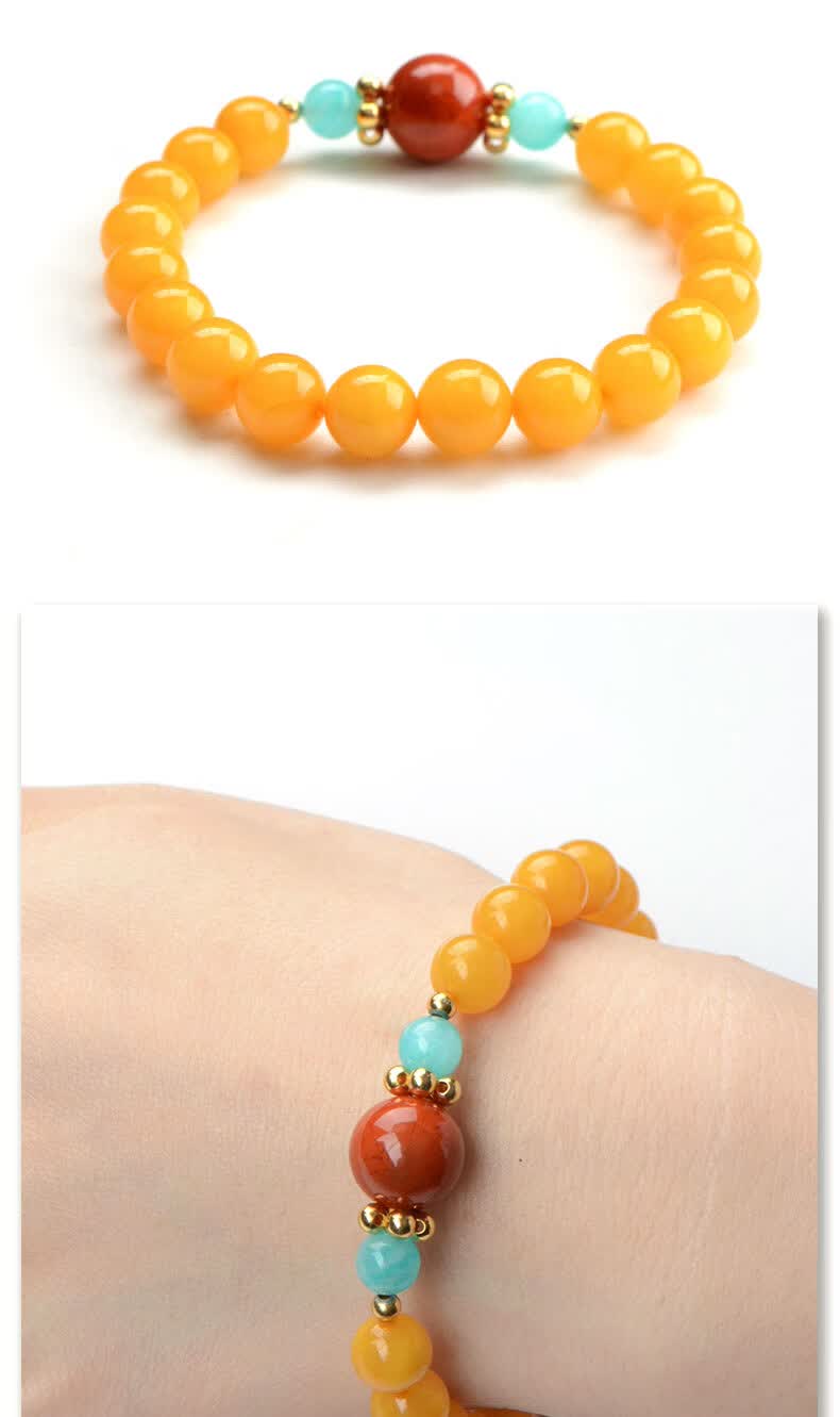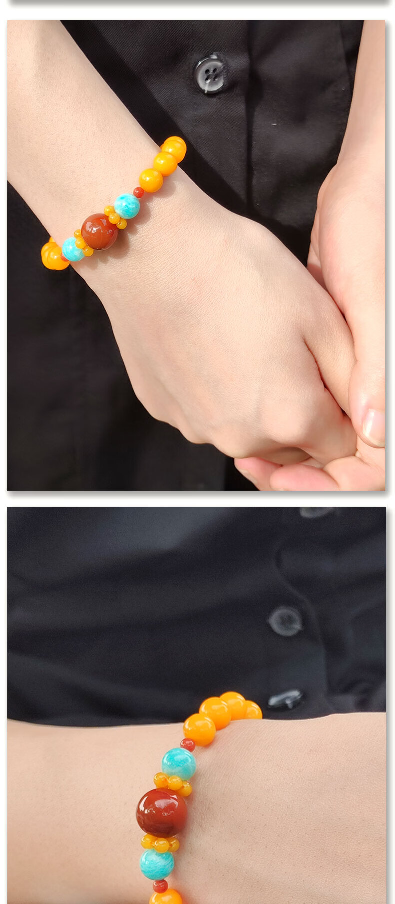 她世代【母亲节礼物】天然蜜蜡圆珠手串老蜜琥珀南红翡翠转运珠手链 南红款(866474)