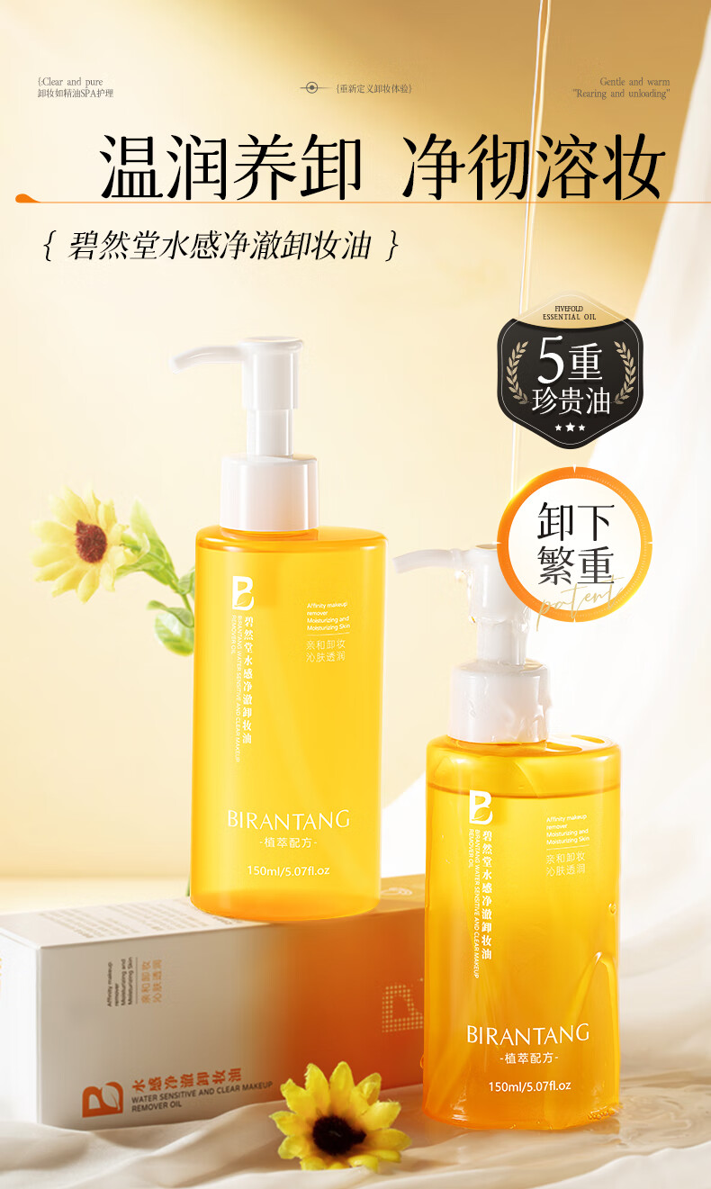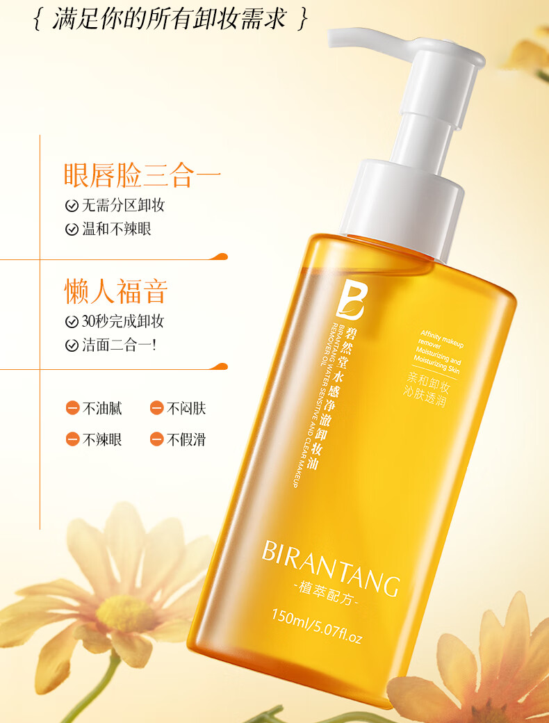 碧然堂水感净澈卸妆油敏感肌温和清洁面部不刺激 旅行装 三合一 卸妆 【植萃配方】温和卸妆油*1瓶