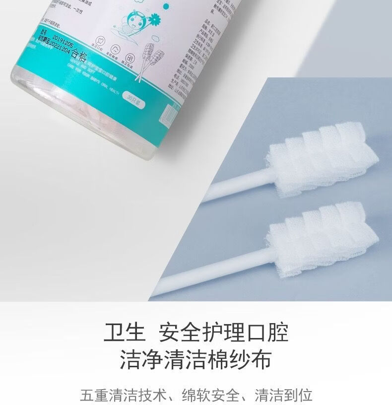 口腔清洁棒卧床老人口腔清洁吸痰刷洗舌苔纱布护理棉棒久躺神器 2盒60支【独立包装/干湿两用】