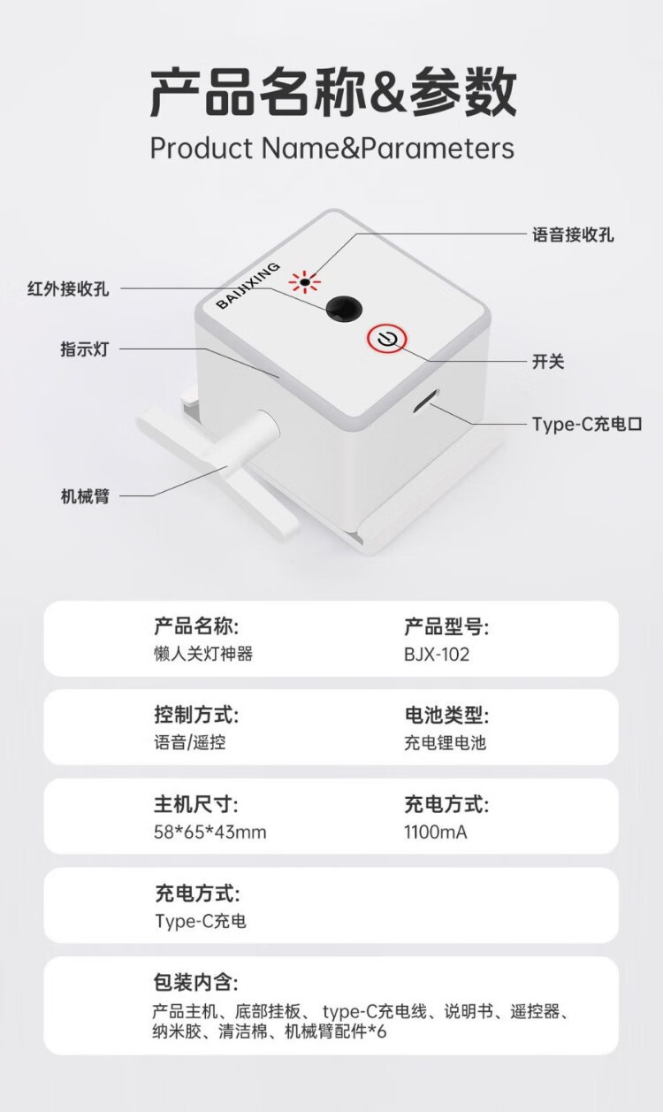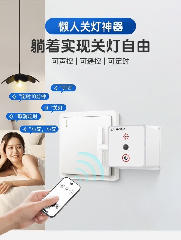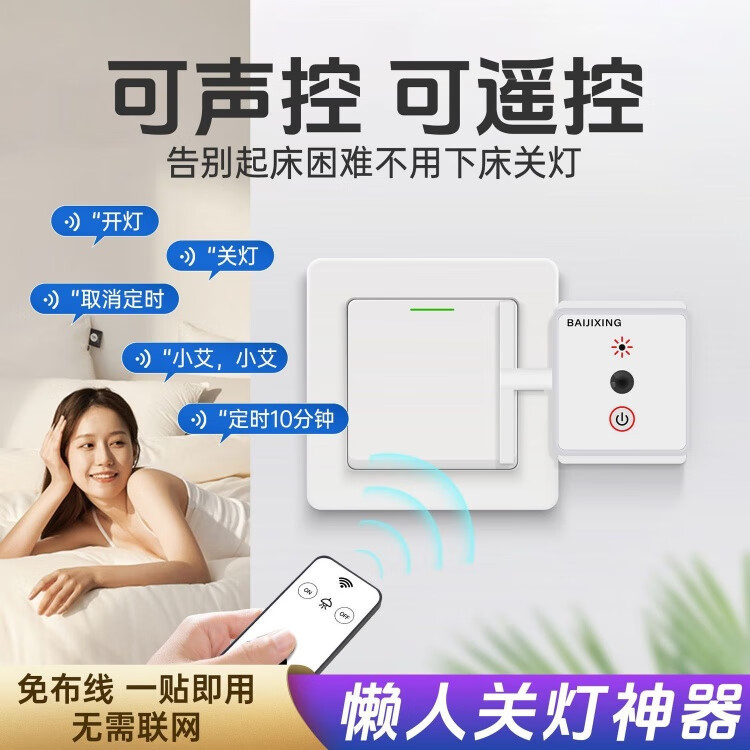 语音声控开关关灯神器懒人免布线智能语音家用开关定时手指机器人 高配版语音+遥控器款-懒人开关